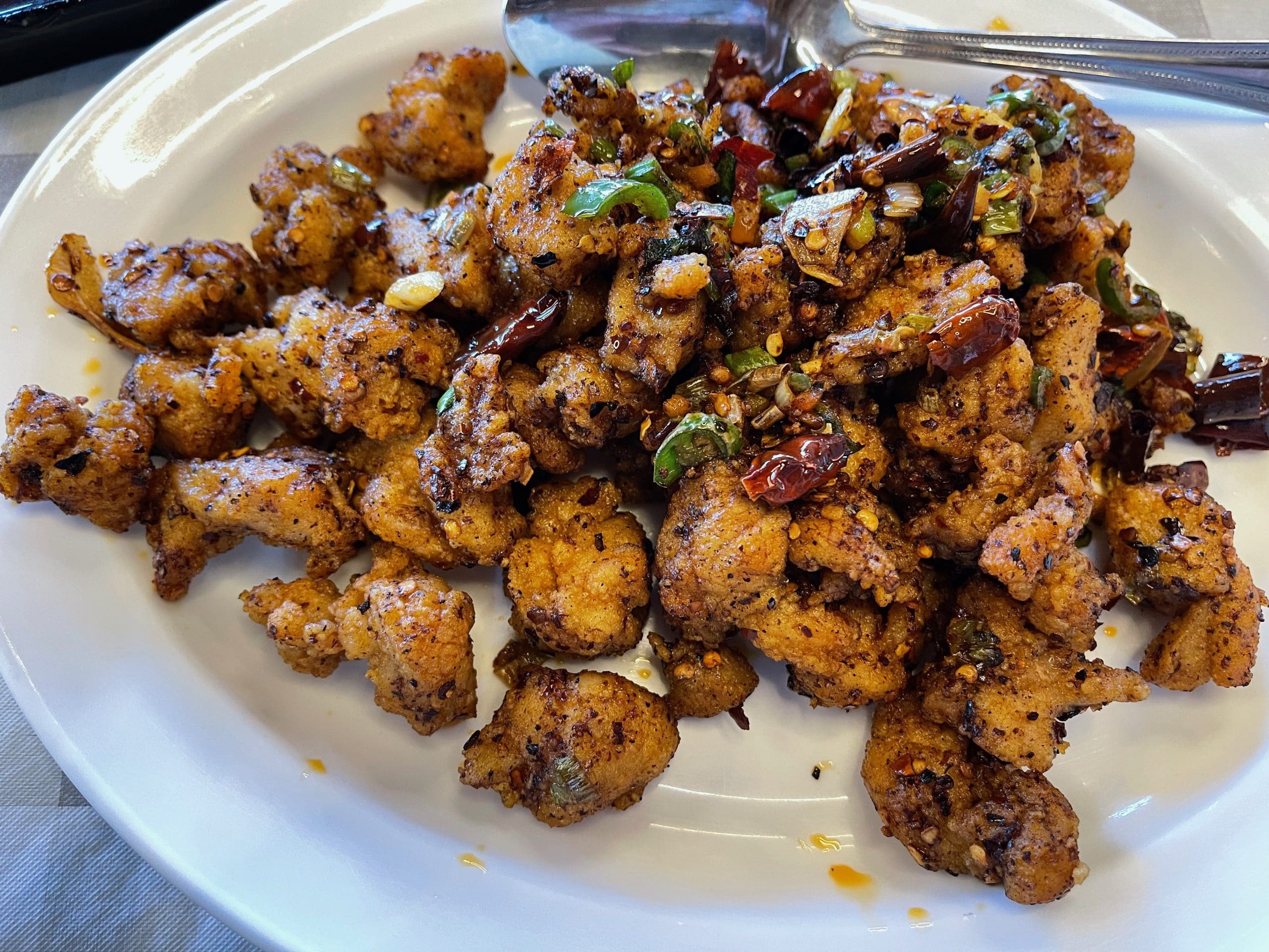 13 March 2022: When hosting the Travel Channel show Man v. Food, television personality Adam Richman quipped “A good spicy challenge strikes a balance between flavor and fear.” Although Richman probably doesn’t enjoy spicy food for the sake of spice alone, the premise of the show was for him to take on culinary competitions. Mammoth monstrosities such as a seven-pound burrito didn’t elicit fear as much as spicy food did. He would have enjoyed (not feared) Nio Szechuan’s spicy fried chicken, a fiery blend of thinly breaded poultry, potent peppers and chili oil. This is an absolutely delicious dish, everything I expected from a Szechuan restaurant practicing traditional culinary arts that optimize flavors.