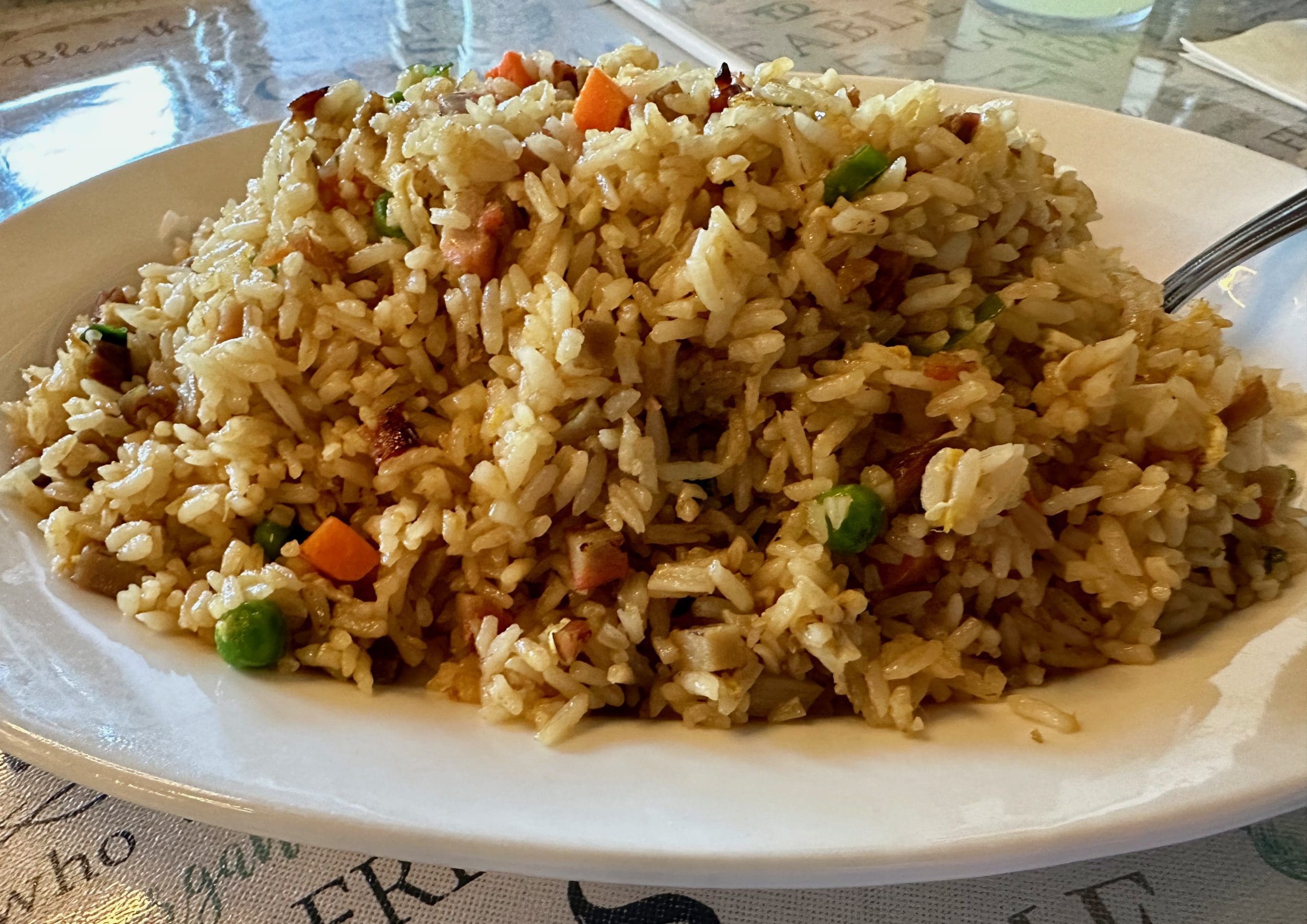26 July 2023: Unlike Crab Rangoon and is crab-less cousin cheese wontons, fried rice was definitely invented in China. While most of us tend to believe fried rice is an inexact science (just some rice thrown together with small bits of vegetables and meats) the truth is there are standards and rules that govern how fried rice is prepared (not that they’re strictly followed by American Chinese restaurants). Fried rice is believed to have been “invented” in the city of Yangzhou in the eastern Jiangsu province of China. According to Kenny Ng, a much better qualified culinary historian than me:, “an emphasis on balance and harmony with an almost artful reverence for the poetry of food is centered in Yangzhou.” He says there’s even a “standard rubric for a proper fried rice down to recommended colors of ingredients kissed through the wok—including shrimp, scallops, chicken, Chinese ham, sea cucumber, mushrooms, bamboo shoots, and peas.”