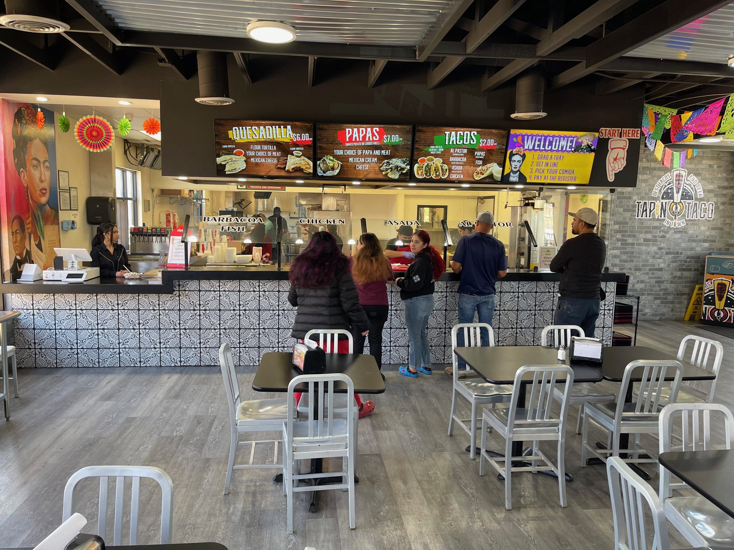 Tap N Taco has a full liquor license to offer eight local beer taps, four or five brands of bottled Mexican beer and margaritas. Alas, what it doesn’t offer is aguas frescas, the refreshing Mexican beverage that’s really caught on on this side of the border. High-definition televisions are strategically placed for customers to watch sporting events. Burger King’s well-used drive-thru window remains open for those who may not want to dine-in.