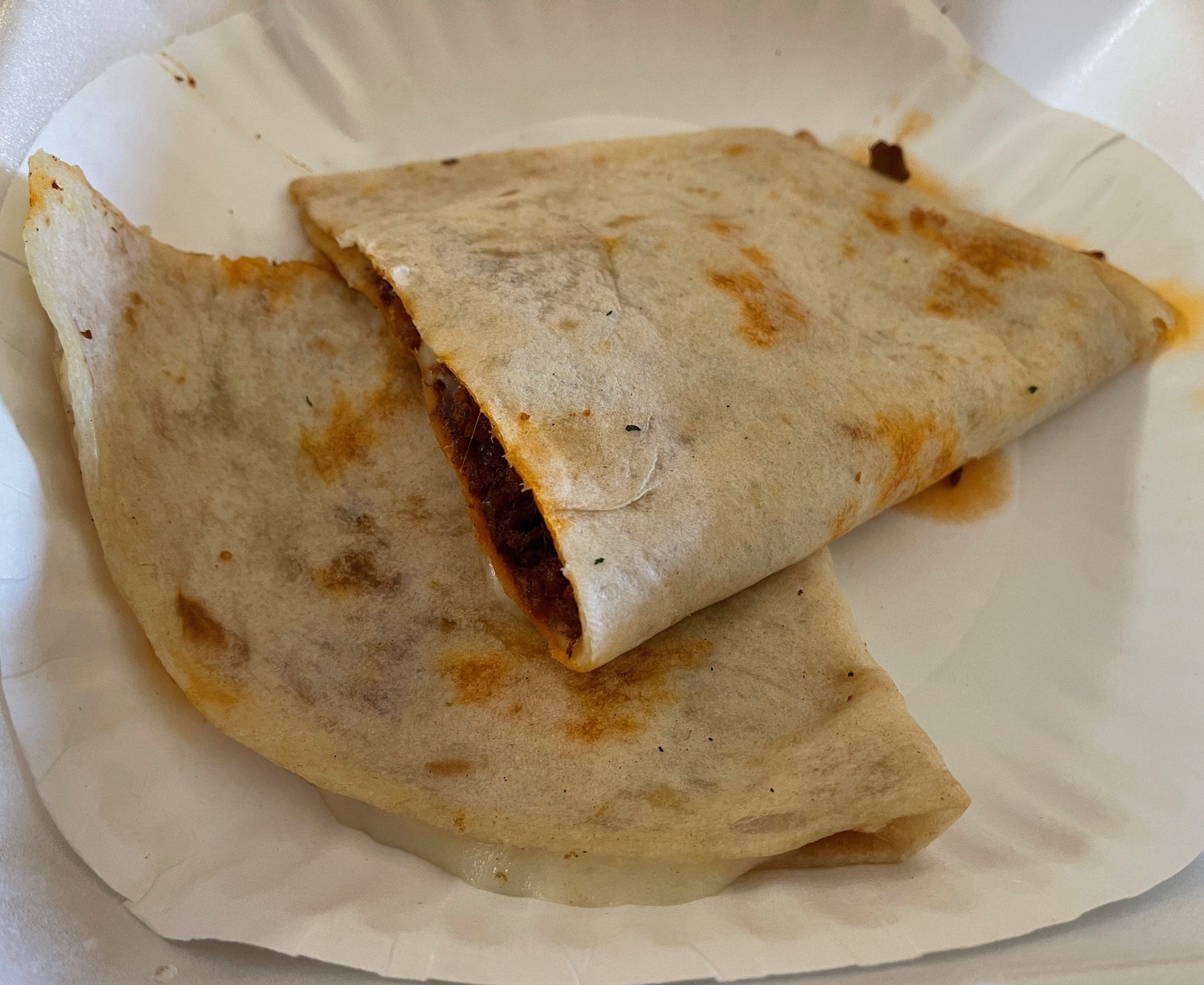 For dinner I took home a quesadilla stuffed with al pastor. Watching it being constructed was a fun experience. The grill master essentially grabbed a handful of shredded white queso, finely cut al pastor and a thin flour tortilla and masterfully manipulated heat and plancha to meld the ingredients into a cohesive, absolutely delicious whole. Even reheated four hours later, the flavors of the quesadilla made me wish I’d brought another one home.