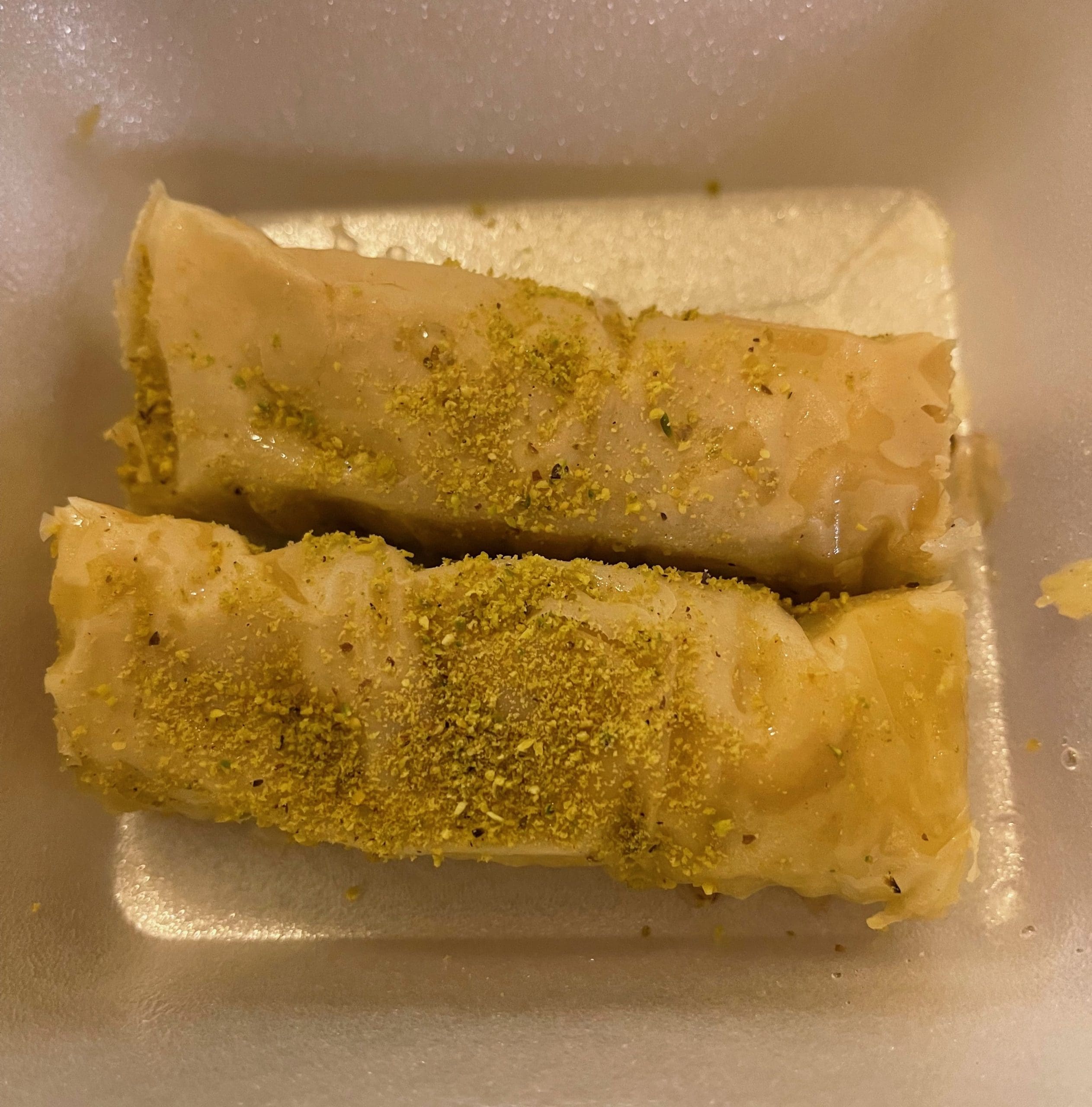 Baklava is the only dessert on the menu, but there’s a six pack of baklava under the display case. Walnut may be the most familiar filling, but most other common types of nuts are also available inside layers of airy pastry. Each has a distinctive shape. The pistachio baklava (my lifelong favorite) is cylindrical. The Queen baklava, replete with mixed nuts, is a disc with a crimped edge. We didn’t have room to try them all, but that’s what additional visits are for. Do yourself a favor and save room for at least two.