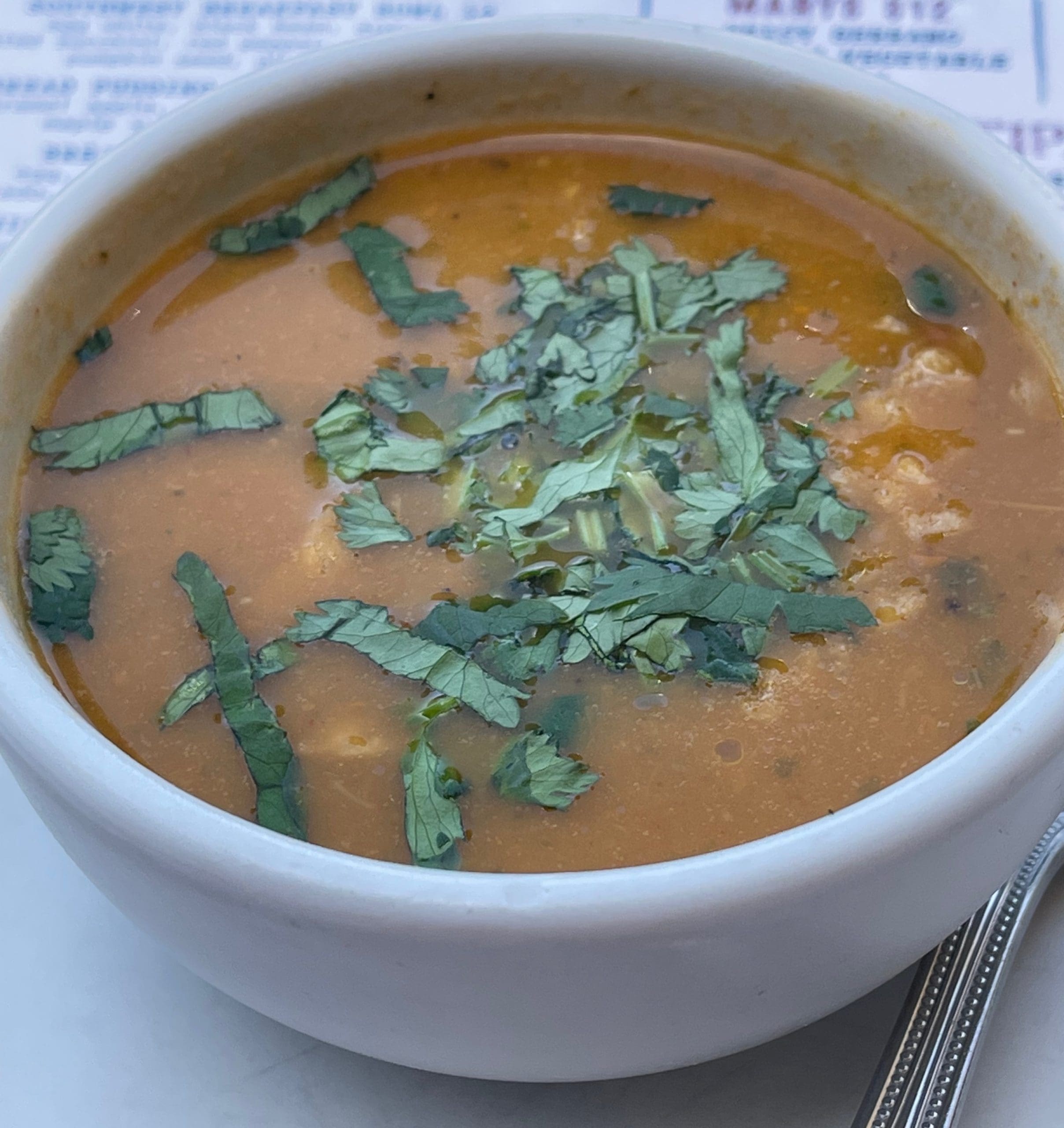 Yesterday’s soup turned out to be a tortilla chicken soup brimming with flavor and chock-full of fresh, flavorful ingredients. The slivers of tortilla were so crisp that they had to have been added just before serving. Yesterday’s tortillas would have been absorbed completely into the soup. Almost every spoonful of the soup included a piece of chicken–not a smithereen or crumb, mind you, but hunks of it. The tomato-based broth was rich and hearty, an exemplar of soup being a comforting elixir. Alas, our server destroyed the illusion a bit by confessing that yesterday’s soup may have been made up that morning.