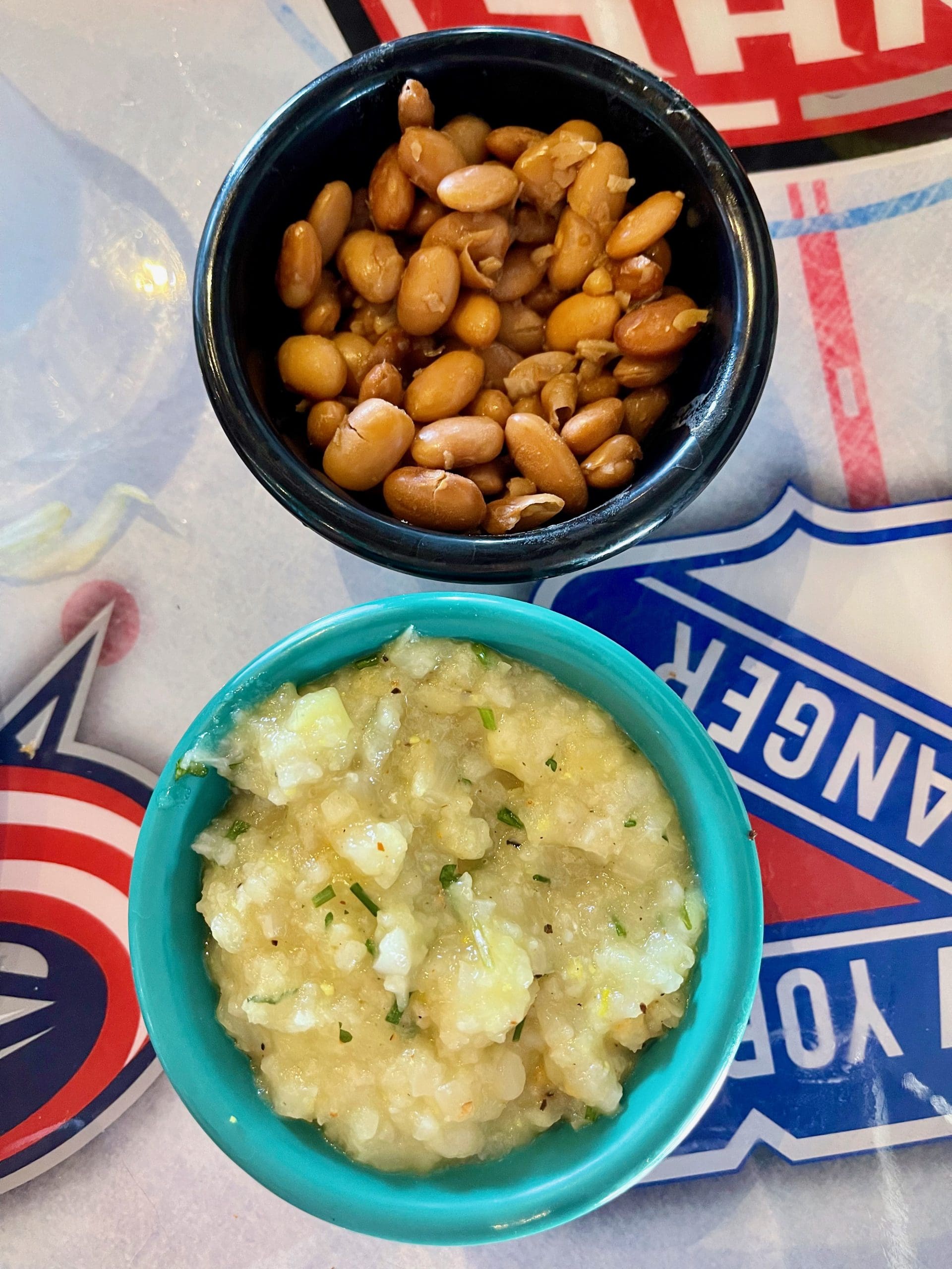 7 August 2022: My Illinois born-and-bred Kim has never been a fan of New Mexico’s official state vegetable. No, not chile. The other official state vegetable–our precious pinto beans. That works to my benefit because (like every true Nuevo Mexicano) I could eat pintos three meals and a snack a day. Turquoise Desert’s pintos reminded me just what I love about pinto beans. They’re creamy and earthy. I should have swiped one of my Kim’s tortillas to form “New Mexican spoons” with which to eat those perfect pintos. New to both of us (and something else my bride didn’t appreciate) was the cauliflower rice. It’s somewhat mushy, but surprisingly flavorful.