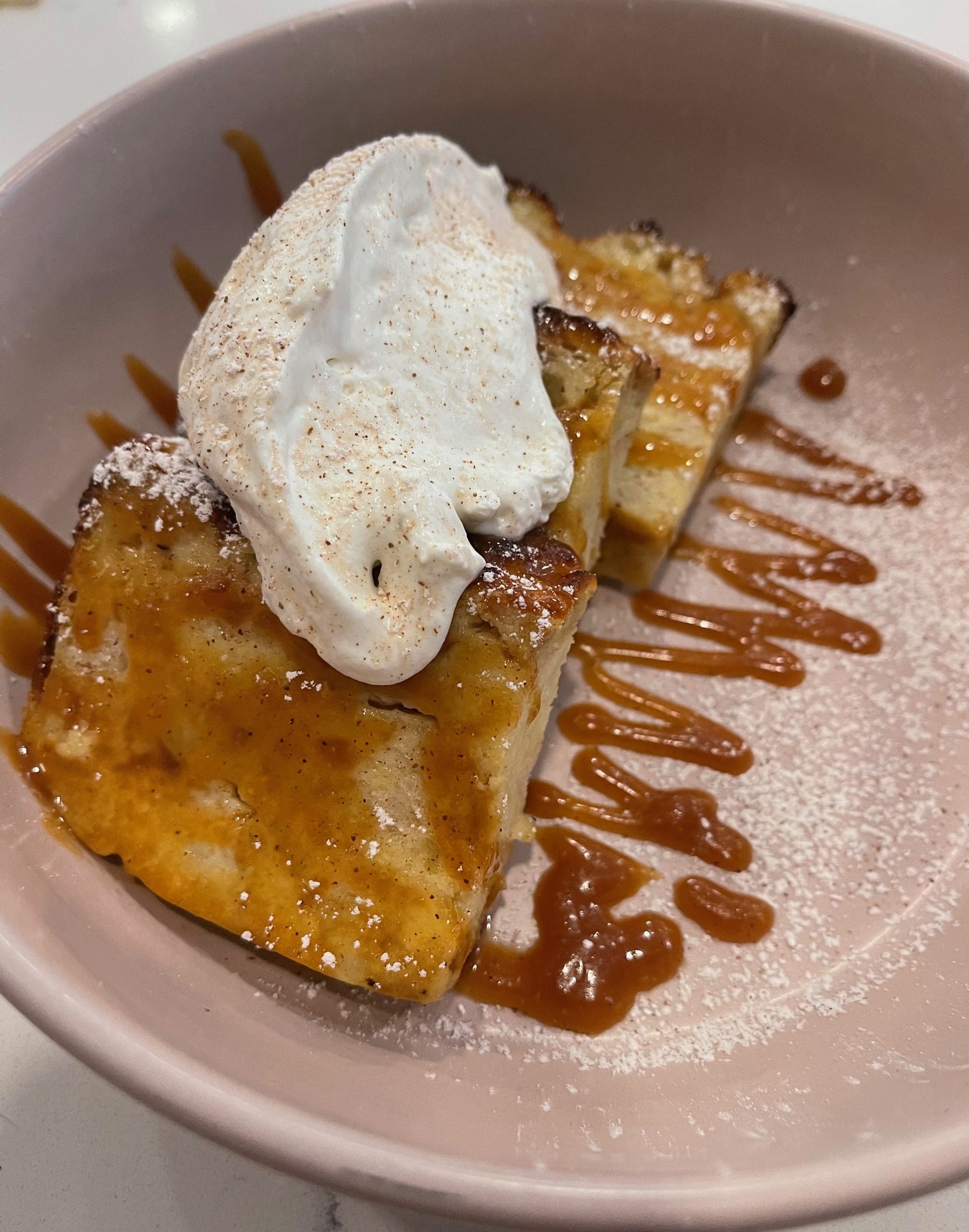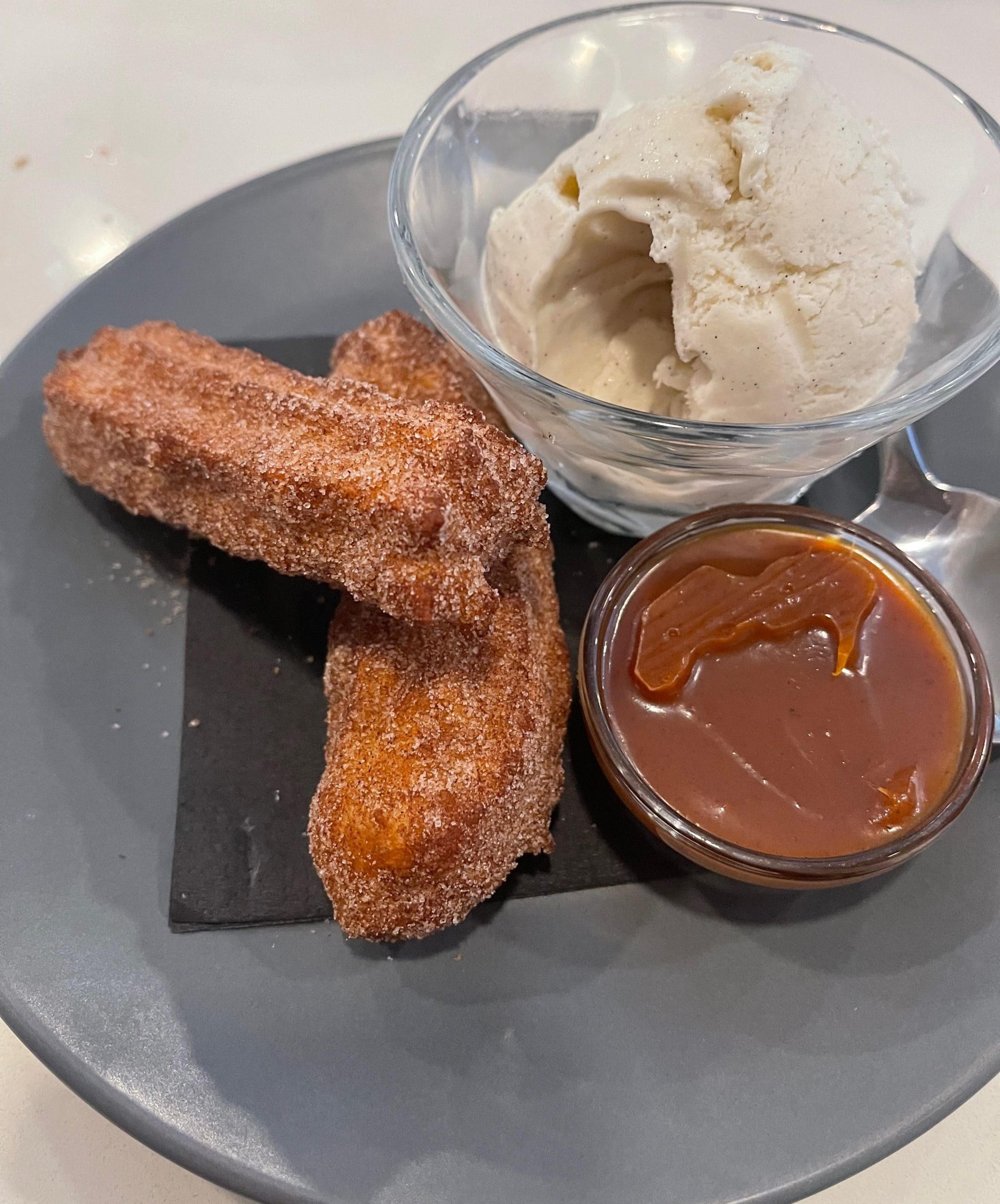 BEST BET: Churros with Vanilla Bean Gelato, Bread Pudding, The Italian, Clam Chowder, Coccoli
