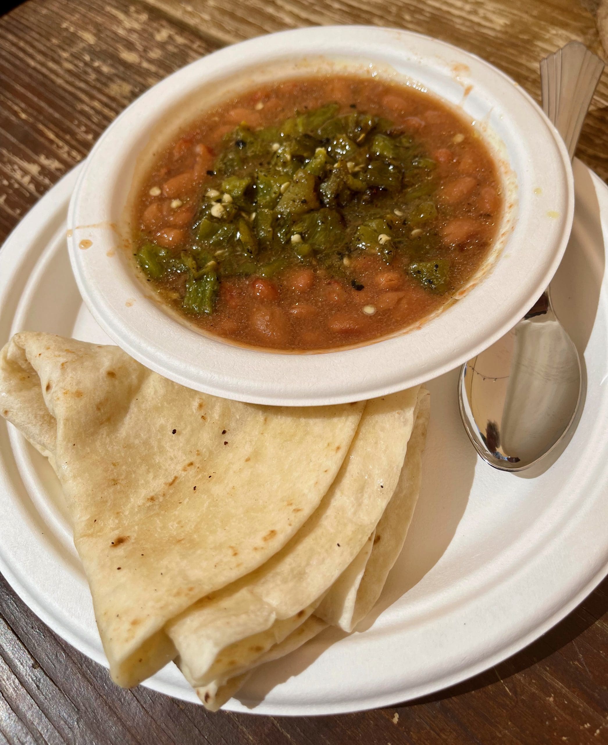 We all know The Buckhorn Tavern is renowned for its green chile cheeseburgers, but did you know the best companion for any burger is not fries, but a bowl of whole beans? Add green chile to the bowl and you will have paired New Mexico’s two official state vegetables–frijoles and chile. These frijoles come from Estancia, home to arguably (they won’t get any argument from me) the very best beans in the Land of Enchantment. A flour tortilla on the side can be used to fashion New Mexican spoons with which to scoop up one delicious spoonful after the other.
