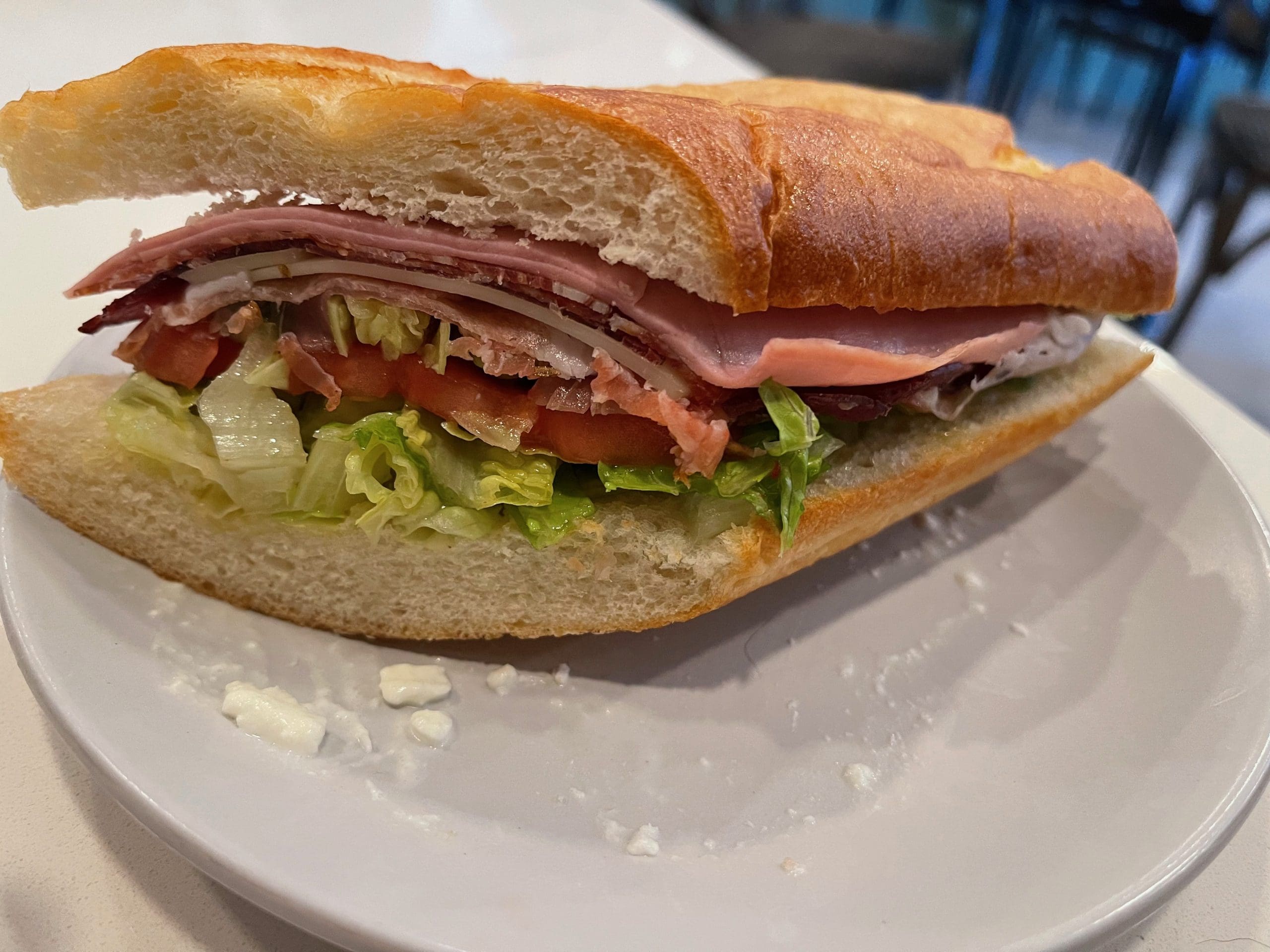 Central Bodega’s The Italian (constructed from prosciutto, bresaola, sobrasada, fontina, mortadella, veggies, olives, pepperoncini and champagne vinaigrette on a baguette) is perhaps the best Italian sandwich we’ve had in the Land of Enchantment. More than making its presence felt is the bresaola which “smells like Christmas” when it’s being sliced thinly. Bresaola has a sweet, aromatic “clovey” flavor that accentuates the taste of the lean beef from which it’s made and the spices used to impart flavor notes. Also notable is the sobrasada with its prominent peppercorn notes. If you love sandwiches with diverse and assertive flavors, this is a sandwich for you.