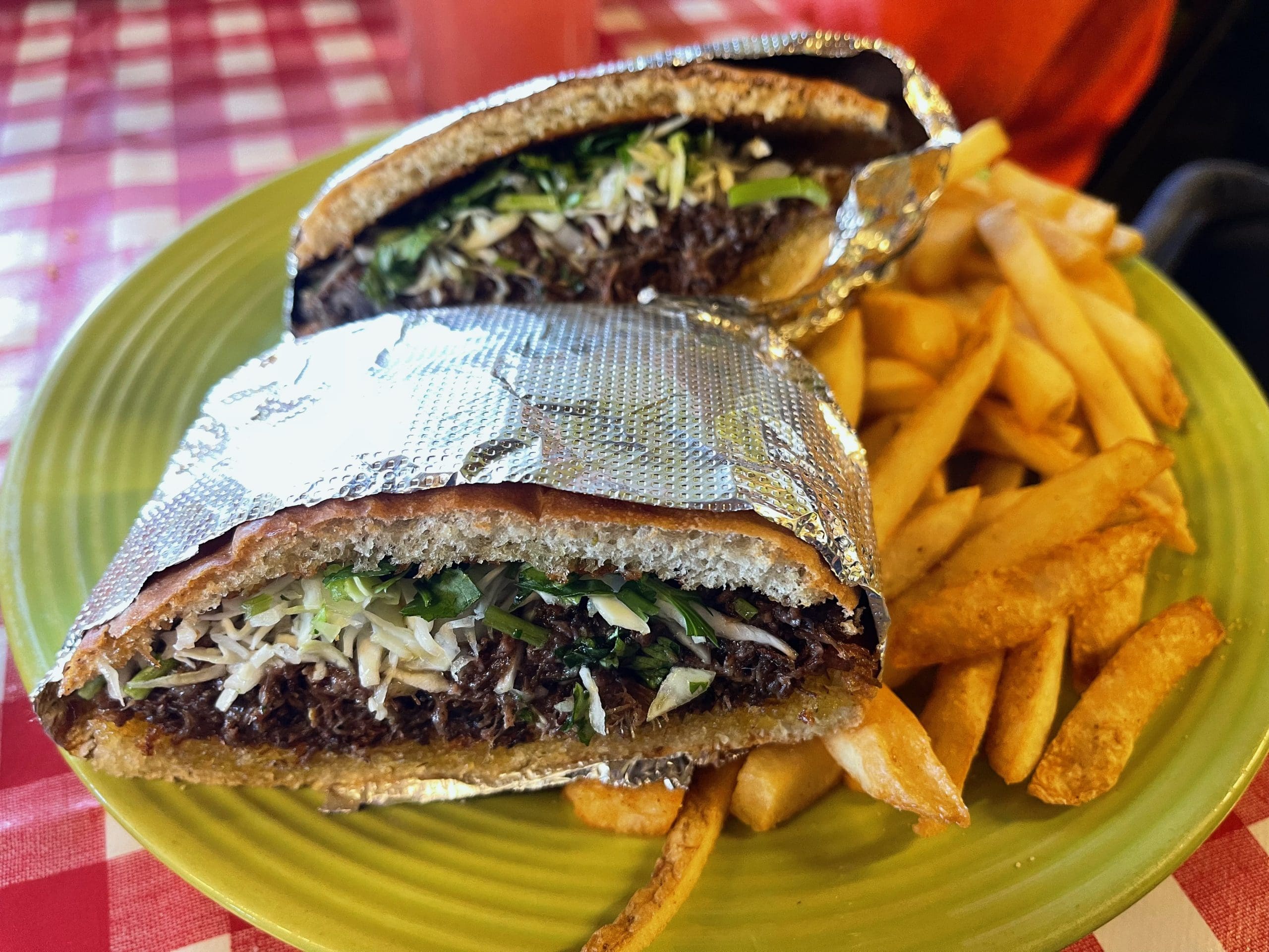 Because barbacoa is one of the foods for which Durango is best known, I had to try it. Los Olivos offers barbacoa on both tacos and tortas. For me, there is no better vehicle for showcasing the deliciousness of any meat than soft, delicate Mexican bolillo bread. It may be sacrilege, but I wholly believe a torta beats a taco any day–even a taco QuesoBirria. Los Olivos version of a torta de barbacoa is made with cabbage, onion and cilantro. Cabbage is something entirely new to me so I expected a coleslaw-like cabbage drenched in mayo or salad cream. Instead, the cabbage was unadorned. While quite good, the barbacoa wasn’t quite as moist as other barbacoa I’ve had. Nor was it quite as generously nestled on the soft, thin bread. The accompanying French fries were crispy and good, but it should be illegal to serve any fries with ketchup in those confounding little plastic packages which not even Houdini can open.