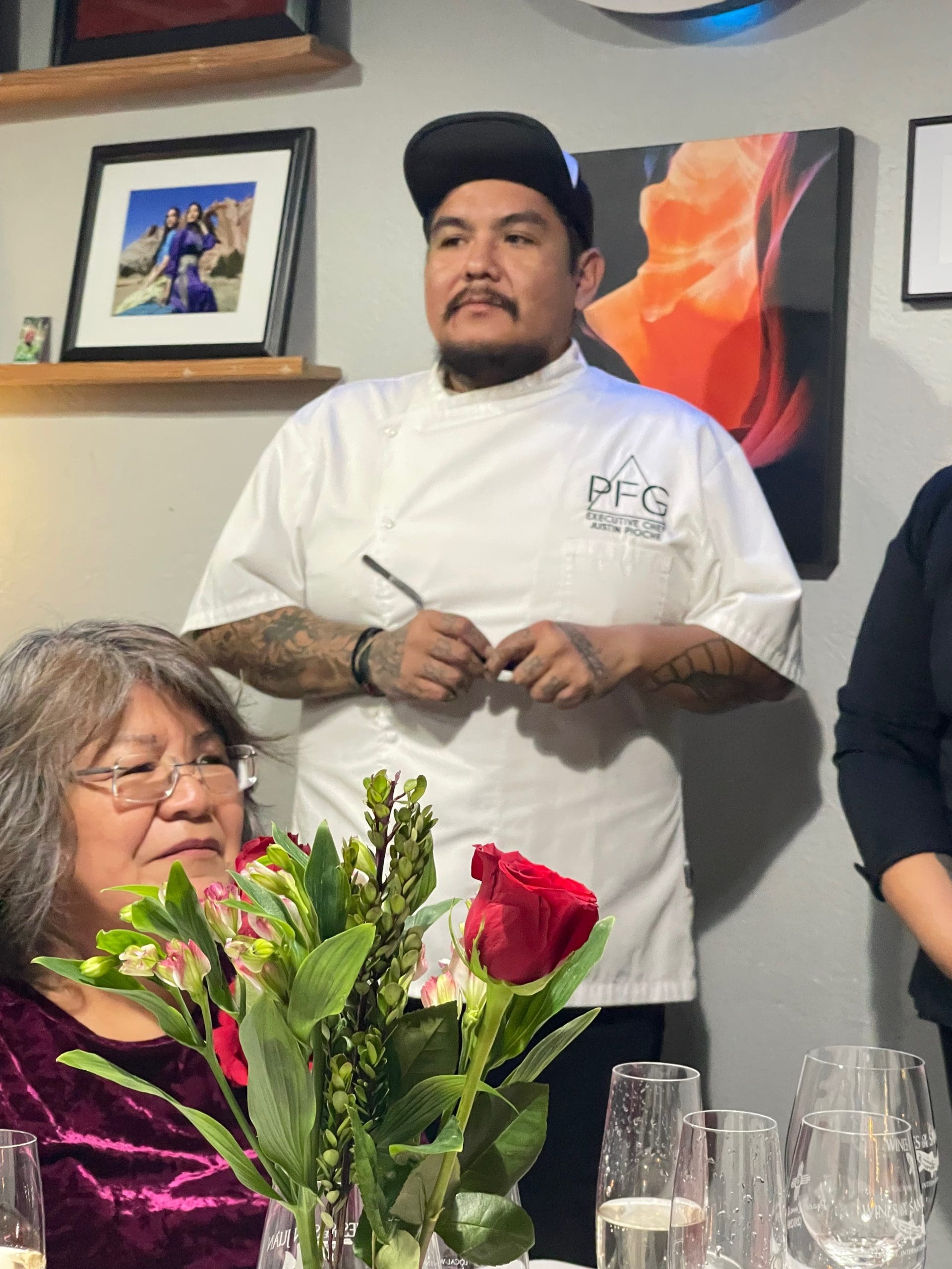 In 2023, Chef Justin was a finalist for the James Beard Foundation’s “Best Chef – Southwest” honor. Though he did not win the award, he gave the culinary world notice that his unique approach to food inspired by and deeply-rooted in his Navajo heritage is going places. Observing his beautifully plated creations will probably lead you to question all the stereotypes you may have had about Navajo cuisine. You won’t, for example, see fry bread or mutton on a plate. You might, however, see caviar, bok choy and freeze-dried roses. That’s Chef Justin being creative, sometimes employing molecular gastronomy techniques to maximize a dishes flavor profile. You’ll also note that many of the indigenous flavors he uses are not to be found in the Southwest. The Pioche Food Group sources ingredients from Oregon, Minnesota and even Canada for some of their creations.