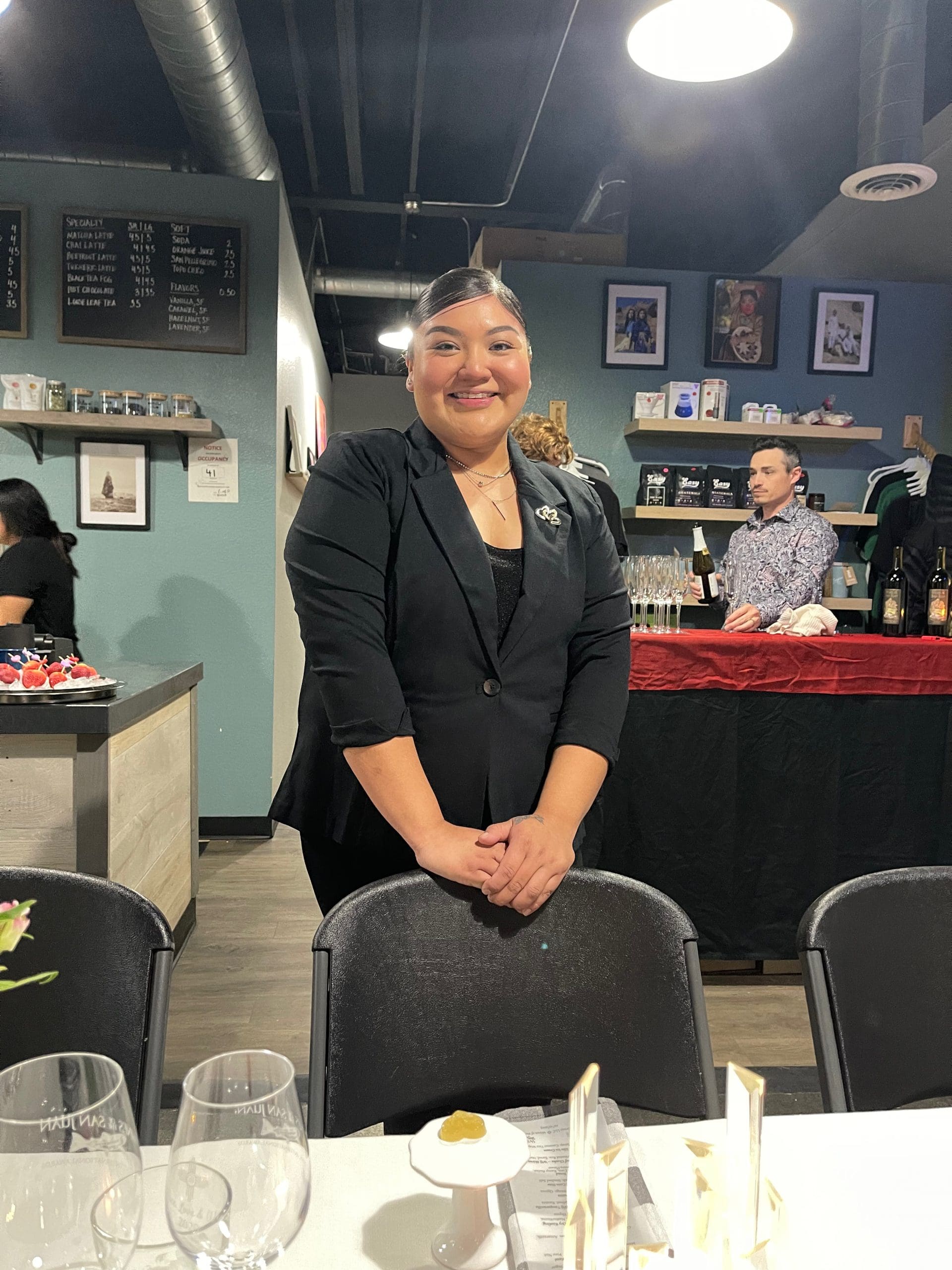 The exclusive LorAmy Valentine’s Day Dining Experience I attended took place on February 10th at the Juniper Coffee & Eatery on College Blvd. Juniper is itself a Native owned restaurant earning acclaim. I was immediately smitten by the charming Tia who greeted me at the door. In that I was the only unaccompanied guest, she seated me next to her three aunts and one uncle. As is usually the case when you’re seated at a community table with people you don’t know, conversation was initially guarded and mostly of the small-talk variety. It wasn’t long before the ice was broken and we laughed like long-lost friends. Justin’s and Tia’s aunts regaled me with stories of their talented nephew and beautiful niece. They gave me a better education about Navajo culture than Tony and Ann Hillerman have.