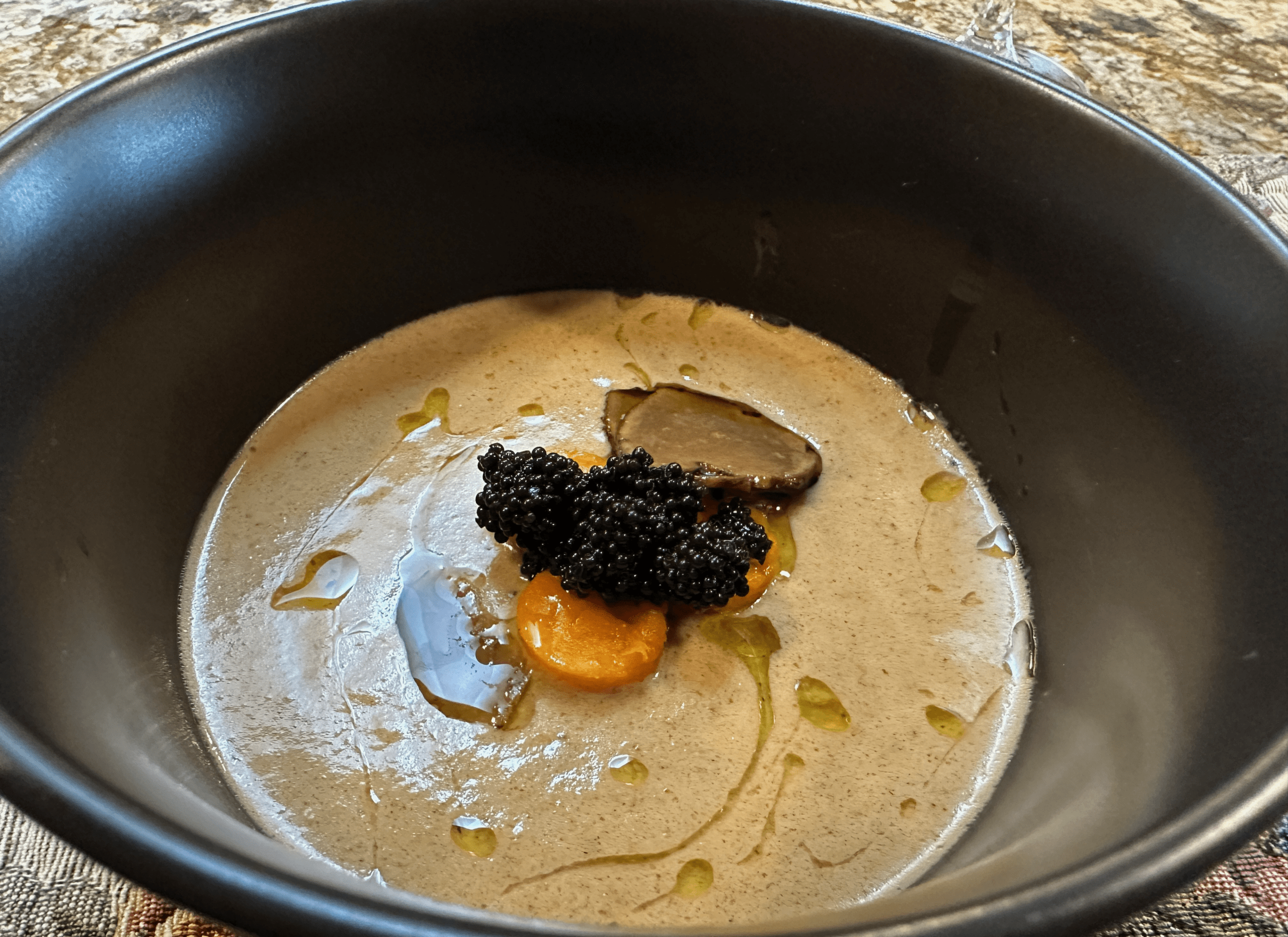 As a young sprout whose teeth resembled a winding road, I wore braces for two years. That meant eating a lot of soup every time my sadist…er, orthodontist tightened those torturous braces. The experience heightened my appreciation for two soups in particular: cream of mushroom and butternut squash. My tastes then were for Campbell’s. Today those salt-bombs would never grace our kitchen. Instead, sophisticated soups are a passion. Chef Justin soup (chanterelle, butternut, truffle, caviar) is in rarefied air as one of the very best soups I’ve ever had. This soup is laden with umami, the so-called “fifth taste.” It’s sheer genius, the combination of ingredients and flavor profiles that made this grown man swoon.