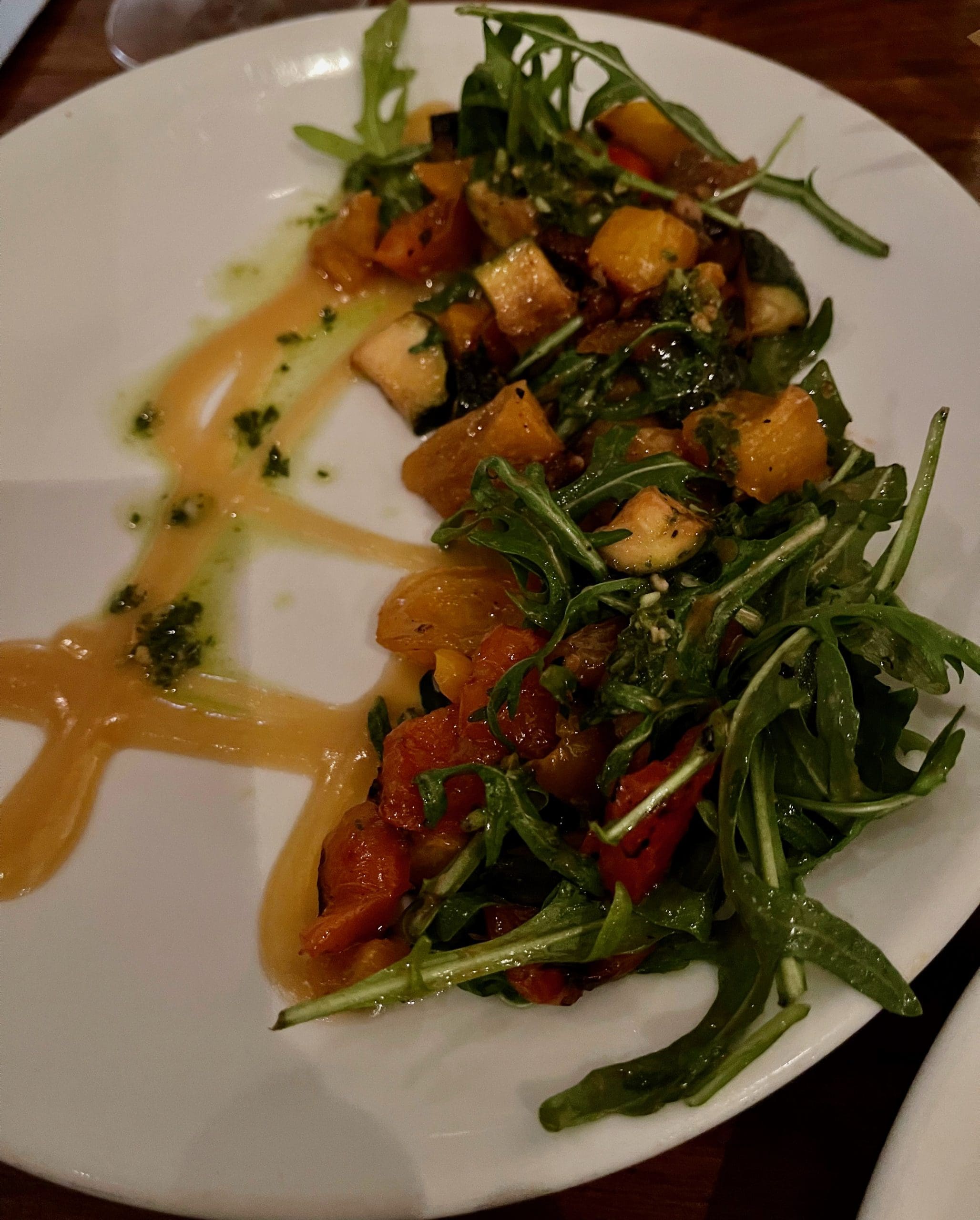 Chef Sellers launched Horno in 2022. It’s readily apparent learning was a reciprocal process at the Street Food Institute where he helped students launch food trucks serving Vietnamese, Thai and Green street food (among foods of other culinary cultures). Elements of those cuisines as well as Mediterranean and Italian menu items, ingredients and techniques are showcased on a menu that features seasonal ingredients. The menu is an exciting melange of items you might not expect to see together in one restaurant. There is something to pique every diner’s interest. We were accompanied by our dear friends Bill and Tish Resnik, discerning diners with varying tastes.