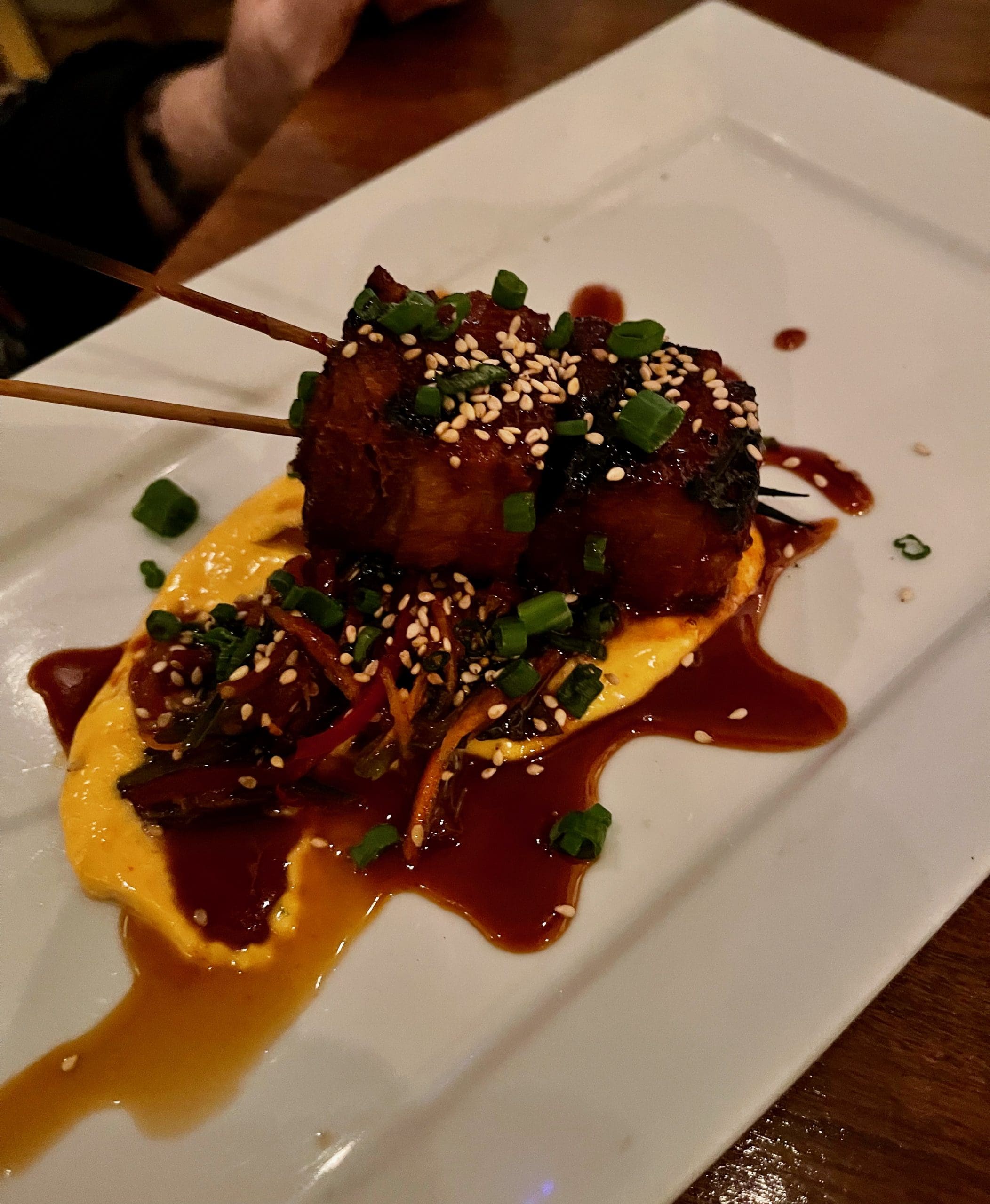 BEST BET: Tuna Tartare, English Toffee Pudding, Squid Ink Cappellini, Miso Roasted Veggies, 6-Ounce Filet, Korean BBQ Pork Belly,