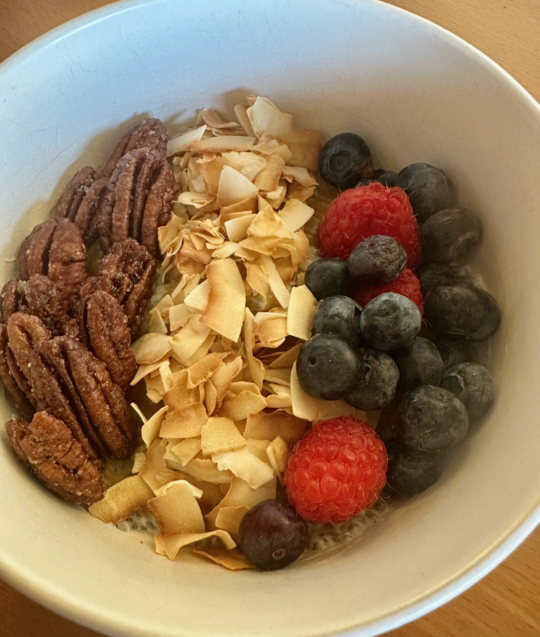 Only three desserts adorn the menu. First is the arroz con leche Mexica (spiced coconut milk-chia pudding, pineapple-piloncillo, seasonal fruits, praline pecans, roasted coconut flakes). Had I worn my reading glasses and studied the composition of this dessert, it’s the one I would have ordered. Thankfully Stephen is smarter than I am and he’s a generous guy who shared some of his bounty with the rest of us. Stephen described the arroz con leche Mexica as “horchata on a plate.” Indeed, it had several elements in common with horchata though very few with traditional Mexican arroz con leche. Those of us who love berries, candied pecans, roasted coconut flakes and delicious surprises will love every bite of this delectable dessert.