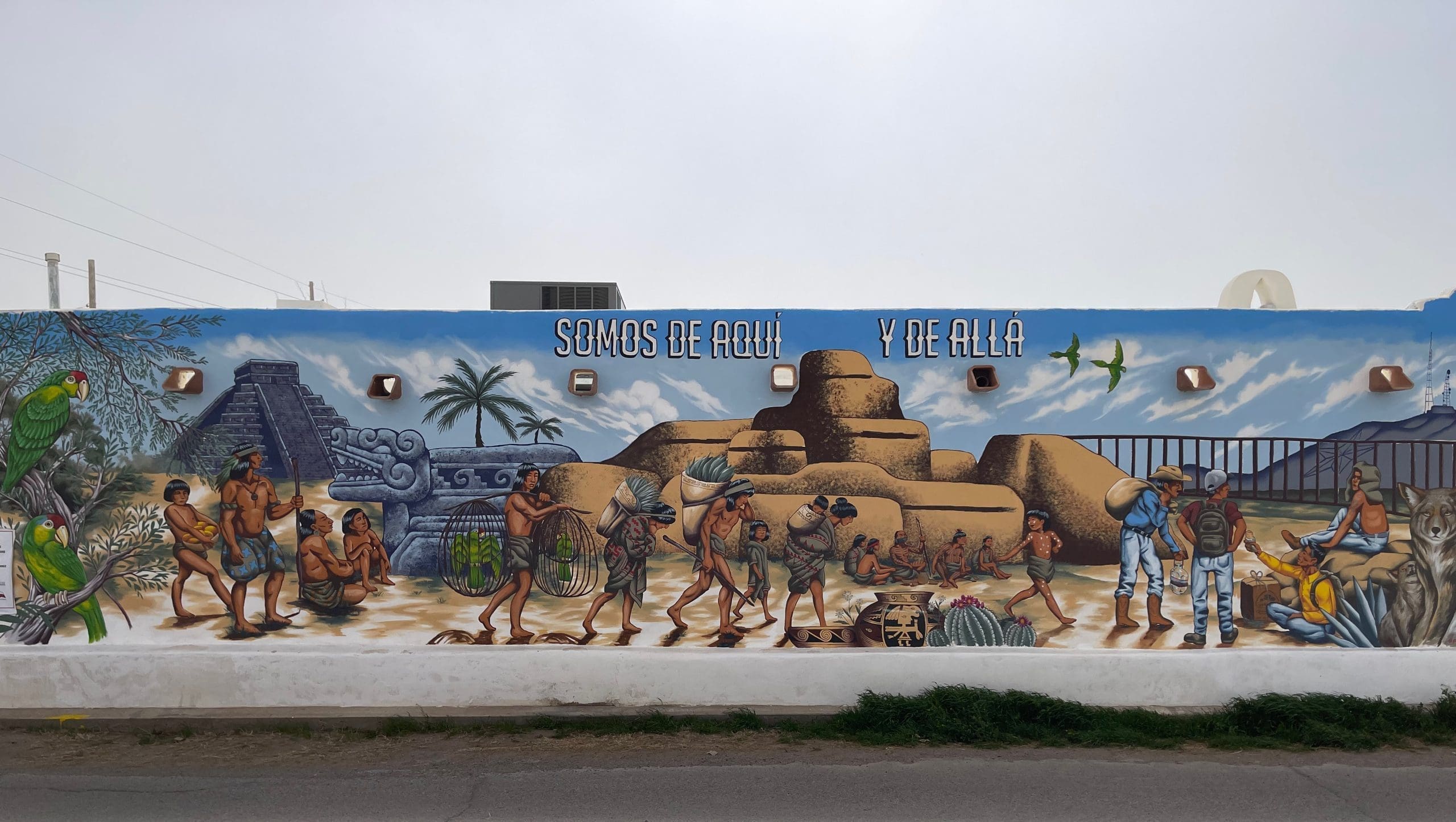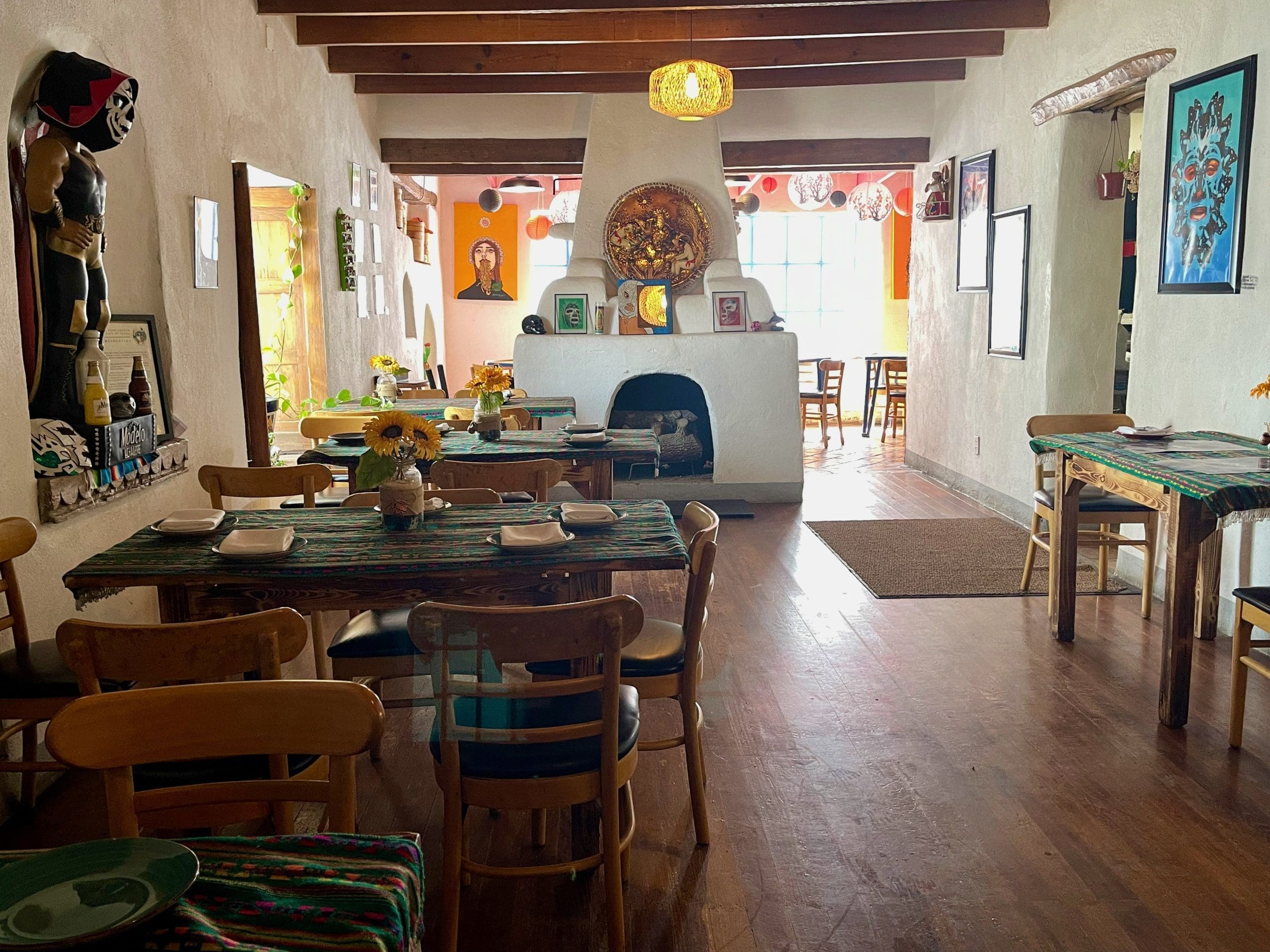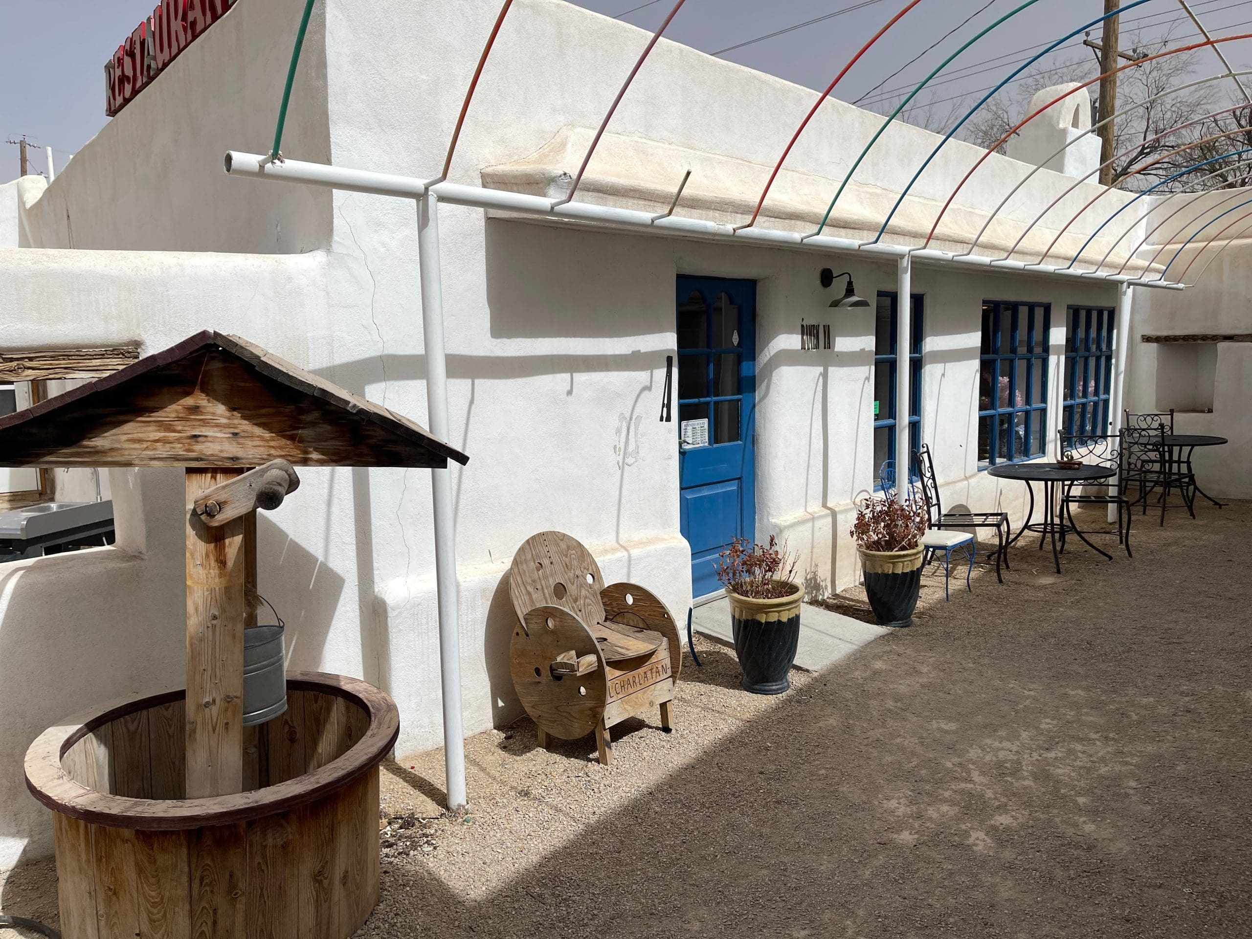 It’s no wonder that even at the safe speed of 20mph, we drove past El Charlatan. We had to double back on Socorro Road. Finding no parking lot in front of the restaurant, we traversed west of the restaurant along a walled complex with an intriguing mural declaring “Somos de Aqui y de Alla,” literally “we’re from here and there.” The poignant mural depicts the evolution of the Mexican people, from Meso-American to contemporary times. The complex behind that citadel-like complex was once Hacienda Apodaca. Today, the complex houses an art gallery, venue hall, coffee shop, and El Charlatan.
