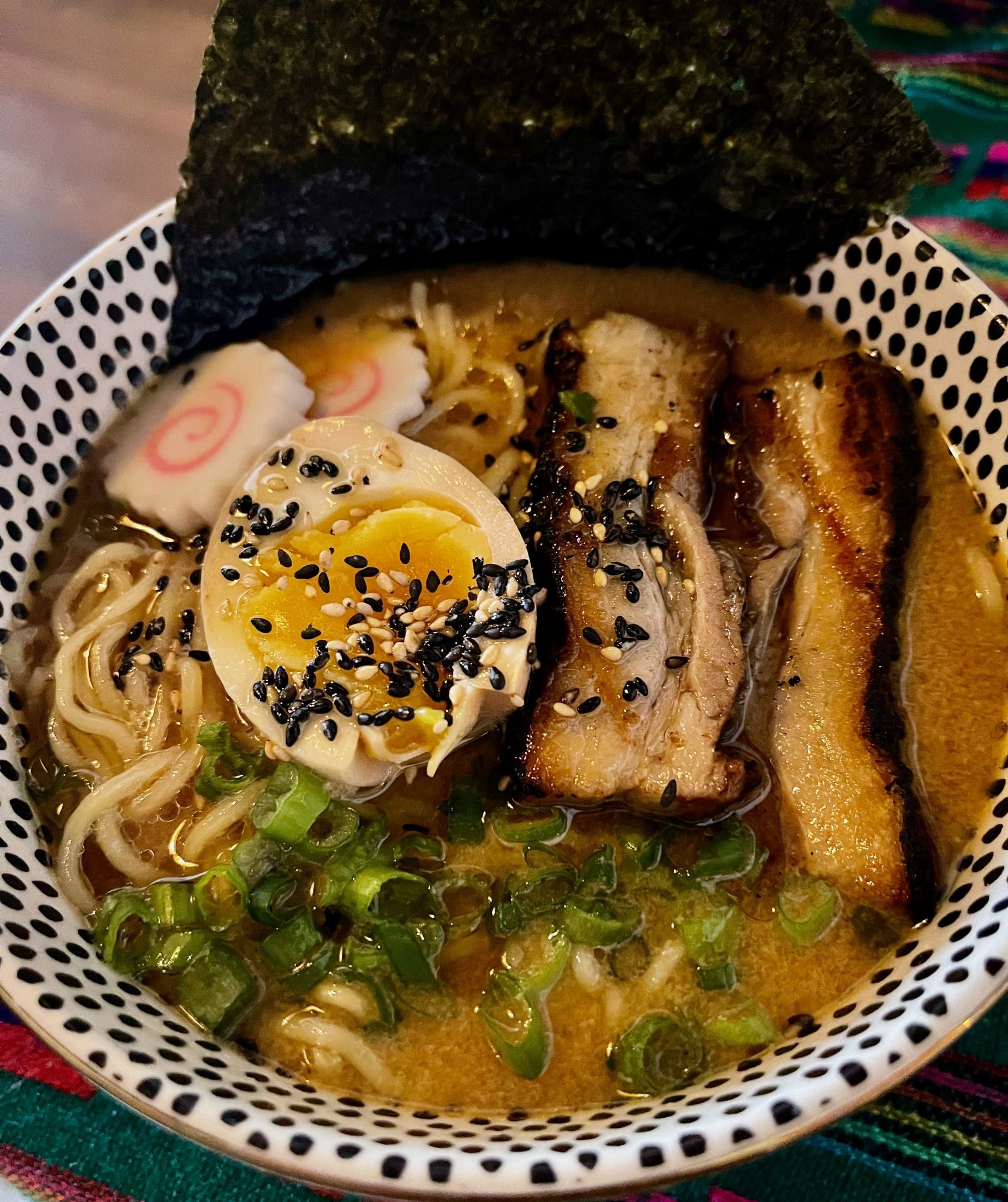 BEST BET: Tasting Menu, Samurai Ramen, Pork Belly Bao, Fried Chicken Bao, Tofu Tempura Bao, Aguas Frescas, Gansito, Gold Leaf,