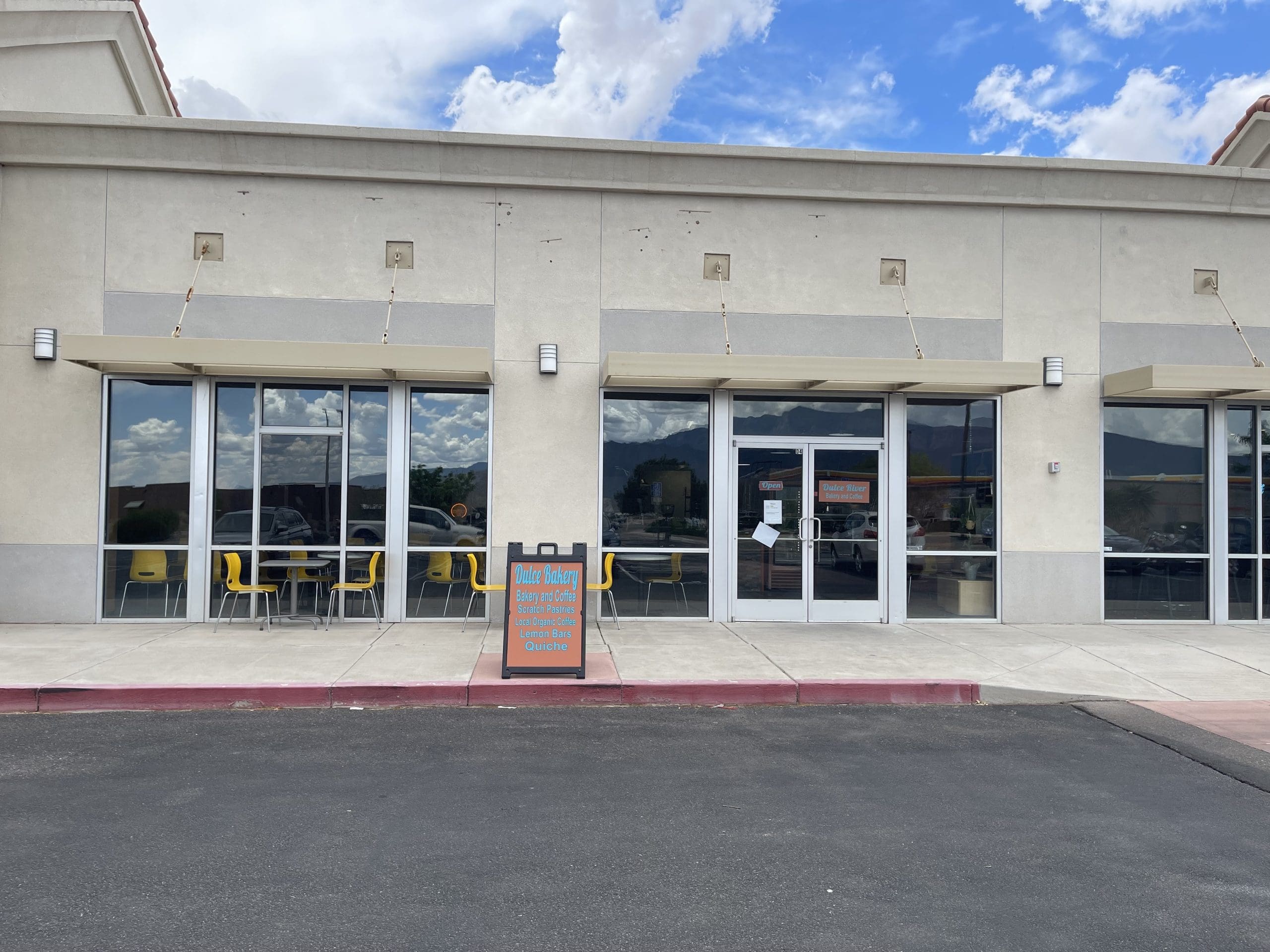 Molly is passionate about her bakery. Hers is truly a labor of love (emphasis on both “labor” and “love.”) She’s got big plans for Dulce River that may not fully reach fruition for nine months or so. While the bakery currently offers a wonderful variety of muffins, lemon bars, quiche, cinnamon rolls, cupcakes (tres leches anyone?), danish and other delicious pastries, in time she’ll be baking tortillas and bread and even serving some sandwiches. Molly is as fanatical about Reubens as I am and will be collaborating with Turquoise Desert’s chef to serve her favorite sandwich. Her enthusiasm for the plans she and the Turquoise Chef’s plans borders on giddy. On Wednesdays she’ll eventually prepare pizza dough which will be ferried over to the Turquoise Grill for finishing (the northeast quadrant of Rio Rancho needs more good pizza). Breakfast burritos will eventually be offered, too. Lest I forget, the name on the soon-to-come marquee is “Dulce River Bakery & Coffee.” Coffees include a lavender vanilla latte neighbors are already raving about.