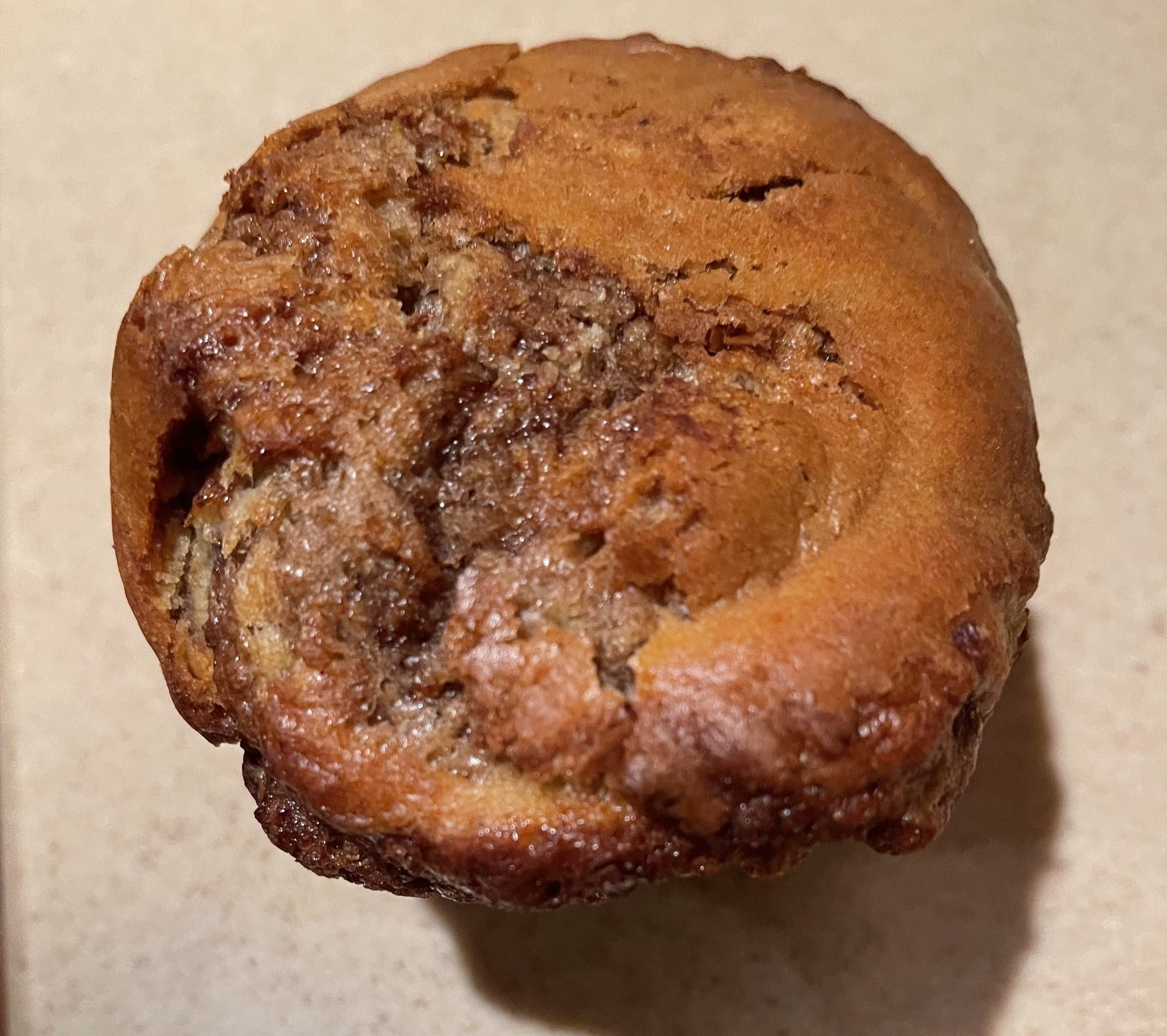 23 May 2023: On out second visit when Dulce River had such an early morning rush that it ran out of pastries and Molly had to bake a second batch of everything. Very few items remained. Surprisingly, there were three nutella swirl muffinsremaining. Not for long. We absconded with them quickly. Our initial experience with nutella muffins is one we’ll have to repeat. My Kim loves nutella so much that she slathered on even more nutella from a jar. I liked these delicate delights just as is. As with other muffins Molly bakes, the nutella muffins have a thin, evenly browned crust. The top isn’t artistic or symmetrical, but it’s very enticing. When broken apart, the texture is moist and uniform with a tender and light crumb.
