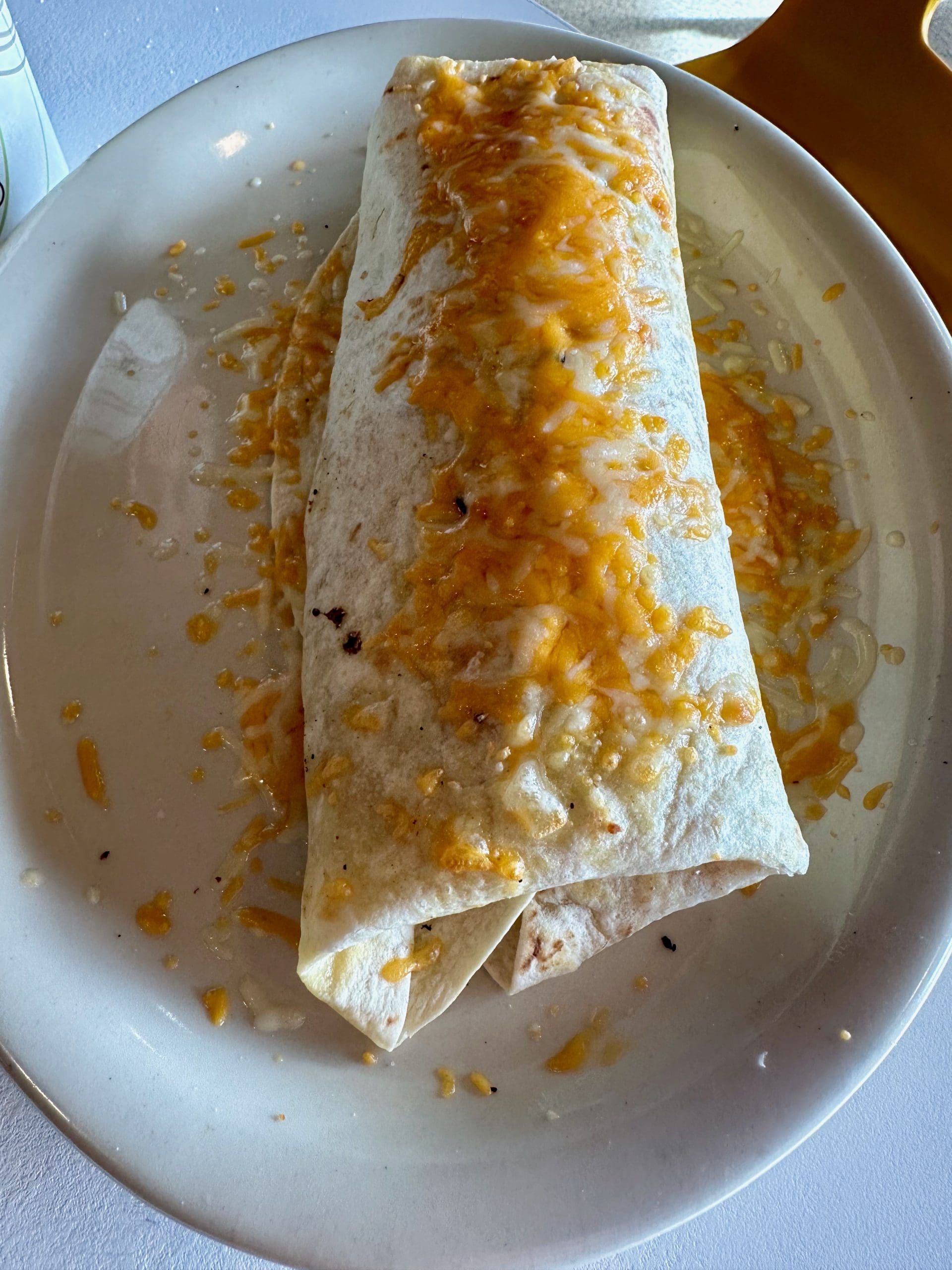 17 January 2024: Study the photo below and you’ll probably discern there’s something missing…maybe something wrong. Conspicuous by its absence on the burrito my Kim ordered were red and green chile. This begs the question: is it still a burrito if it’s not covered in chile. To compound matters, my Kim unrolled the tortilla and ate the entirety of the eggs, bacon and potatoes sans tortilla, too. You may think me unkind for my observations about my Kim’s unique dining, but frankly I relish seeing what she’ll order next. It makes me happy to see her enjoy her meals.