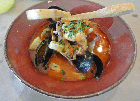 5 April 2014: For seafood lovers, few things are as satisfying as a rich, hearty seafood stew, whether it be cioppino or bouillabaisse. There are several similarities between the Italian-Portuguese cioppino and the French bouillabaisse, both of which have their genesis in the pots and cauldrons of the scions of ancient Mediterranean fishermen. Chef Maxime, a French man who cooks Italian food, can call his seafood stew anything he wants as long as he serves it. Cioppino is a very nuanced dish that takes on the personality of the seafood from which it is constructed as well as the distinct seasonings which give it its kick. Torino’s rendition includes shrimp, Pacific cod fish, mussels, clams and calamari in a star anis clam broth. It’s a San Francisco-worthy cioppino showcasing fresh seafood in a sumptuous broth. You won’t leave a drop.