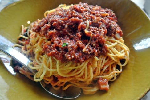 26 December 2014: Shamefully “Bolognese” sauce in American restaurants has typically meant a meat sauce not entirely different from their de rigueur meat sauce. Bolognese is so much more than meat sauce which originated in the northern Italian city of Bologna. Soffrito, a variety of flavorful and aromatic vegetables fried in olive oil and butter forms the base of this sauce to which chunks of meat are added along with a white wine reduction. tomato paste and stock. Unlike most marinara and meat sauces, this sauce isn’t seasoned with oregano or garlic nor is acidity a strong quality. In recent years, we’ve experienced authentic and delicious Bolognese twice–one in Montecito California’s Trattoria Mollie and now at Torinos where the sofrito includes carrots and celery and the meat includes guanciale, pork jaw and beef from the 4 Daughters Ranch in Belen.
