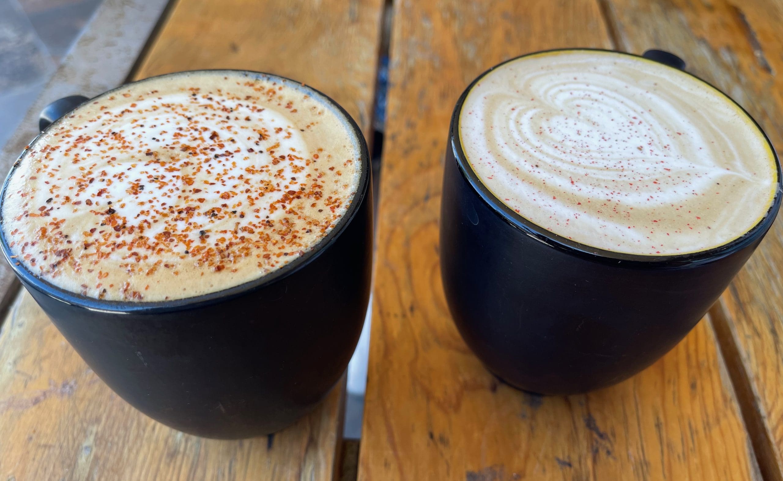 My Kim’s choice was the Salt-N-Pepa Caramel (DOMA Espresso, whole milk, caramel, housemade pink peppercorn simple syrup sprinkled with sea salt), one of the best cups of coffee she’s ever had. In recent years salt and caramel have been so overused as to become passé (though not as much as pumpkin spice). If every coffee tasted like this one, there should be a rebirth of the salt and pepper pairing. The only thing wrong with coffee this good is that you’re bound to finish it quickly. Not that there’s anything wrong with ordering another. Nothing at all!