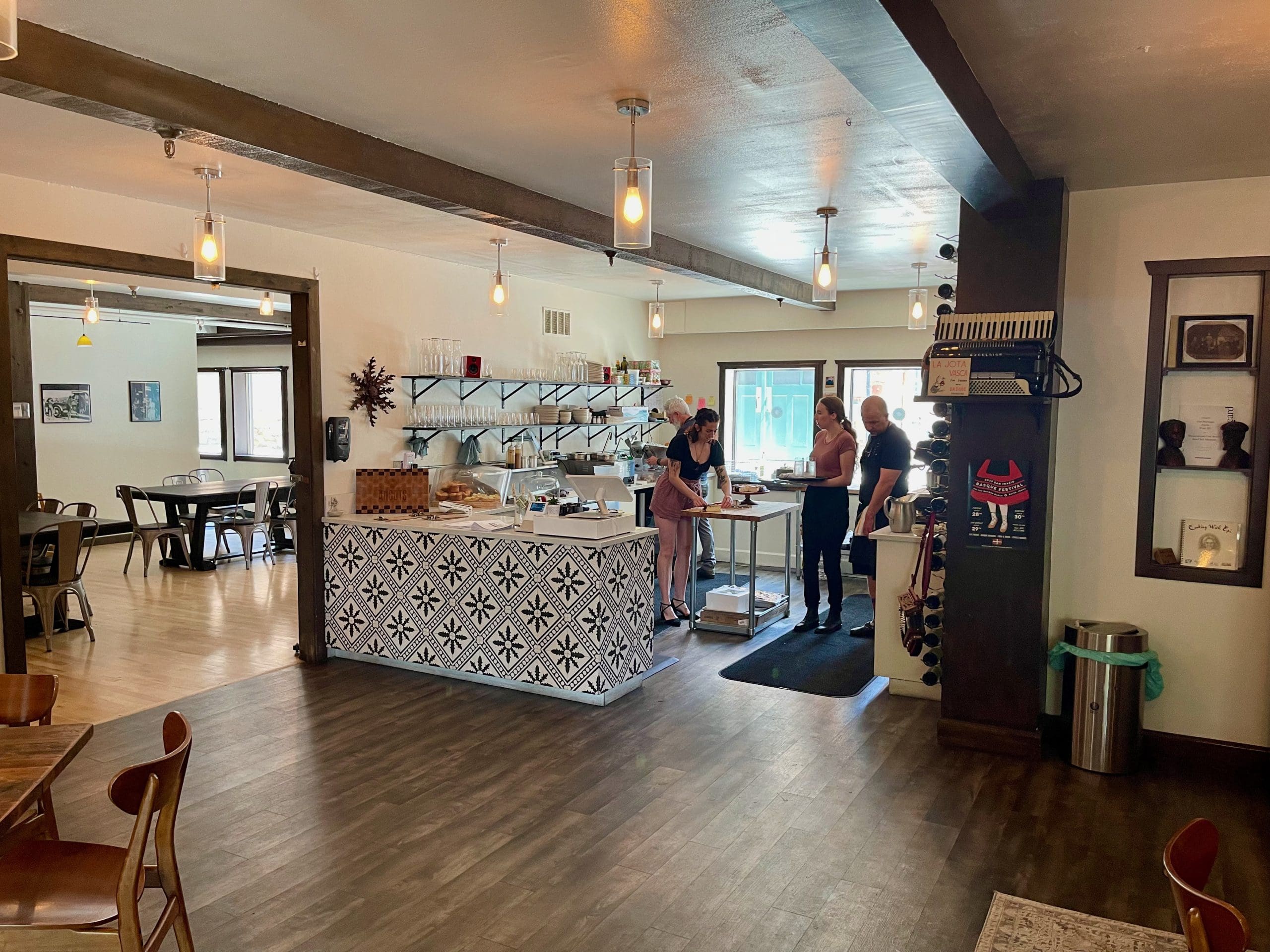 John, with whom I’ve been friends for more than forty years lives in the Boise area, but had never tried the Basque cuisine so prominent in the area. When we invited him to join us at Ansots Basque Cuisine, he was a bit trepidatious (John has known me a long time). He feared our culinary explorations might include grasshoppers, lizards or some other exotic “food.” Thankfully Ellie was on hand to assuage his fears. With an effusive enthusiasm and ambassadorial skill, she described Basque cuisine and urged us on. Ellie is a peripatetic presence at the restaurant, flitting from table to table.