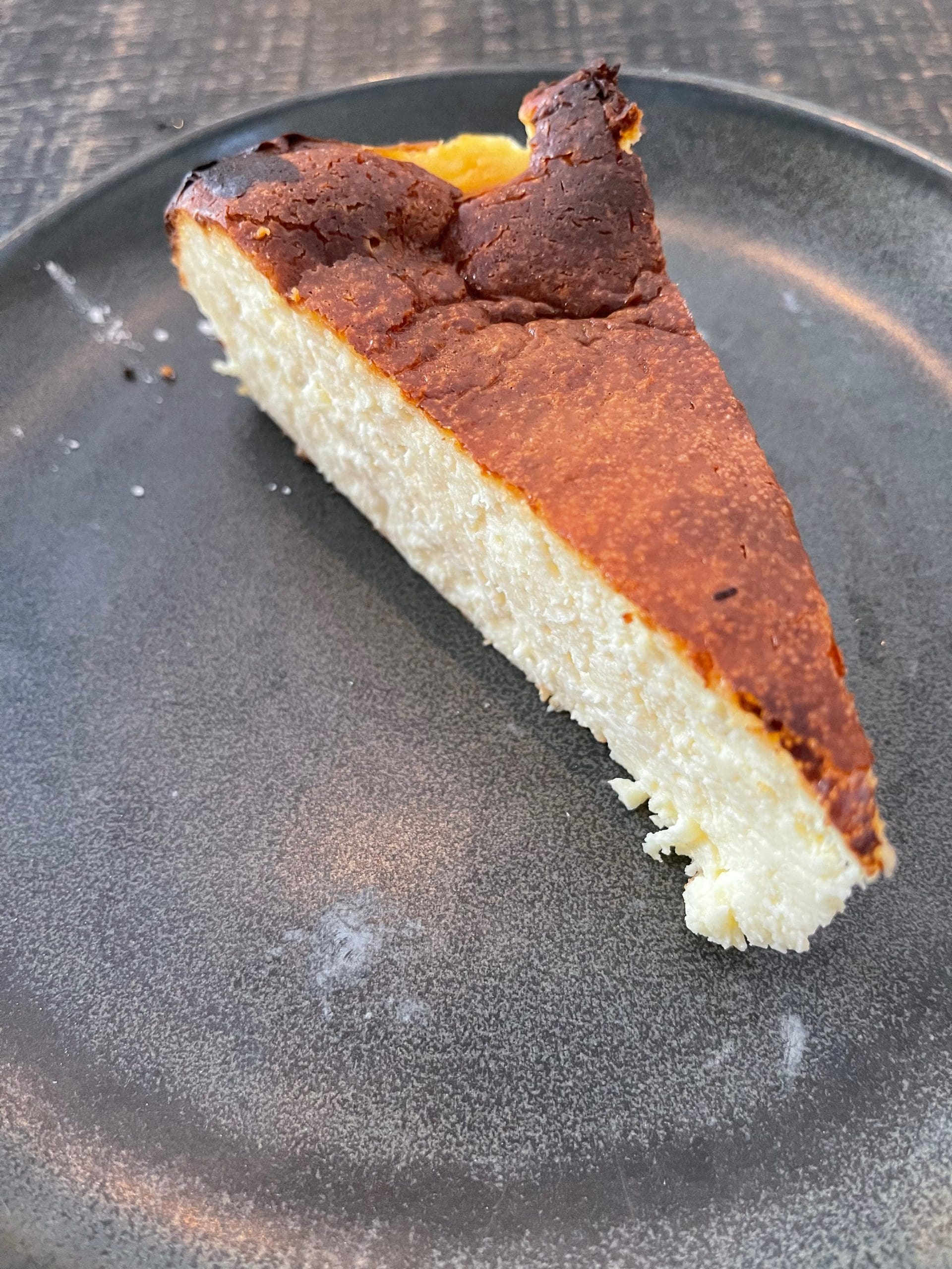 Both Dan and Ellie speak the language of food in the way they interact with their guests. Beyond that, Ellie expresses herself through her mastery of baking. Somewhere between welcoming and serving guests, she manages to bake some of the very best pastries we’ve ever had. Though the three of us were satiated, we couldn’t pass up the luscious post-prandial offerings. I was most intrigued by the burnt Basque cheesecake described on the menu as “a creamy cheesecake with a texture somewhat between flan and NY cheesecake.” This is a crustless, almost alchemic masterpiece, an intentionally burnt cheesecake which provides a bitter outer layer and extra creamy inside.
