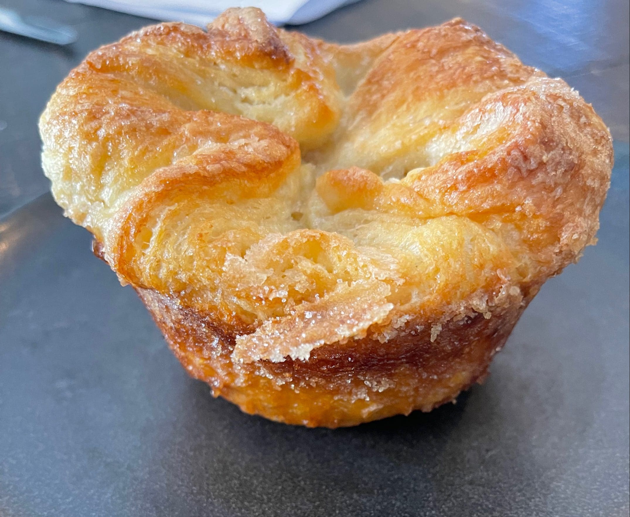 You could easily make an argument that the Kouign Amann is not only Ansots’ best dessert, but one of the world’s most unrecognized “best” desserts–in part because it’s so labor intensive. For decades it’s been a hidden gem available only in Brittany or to immigrants therefrom. Les Madeleine’s Patisserie Cafe(now closed) in Salt Lake City was our introduction to this magnificent pastry. If anything, Ellie’s version is better…and not only because it’s bigger than Les Madeleine’s. Ellie uses a bread dough (King Arthur I believe) and premium butter on her version. It makes a difference. Outstanding as it is, it’s so rich I can still only eat one. Thank goodness my Kim shared hers with John and me.