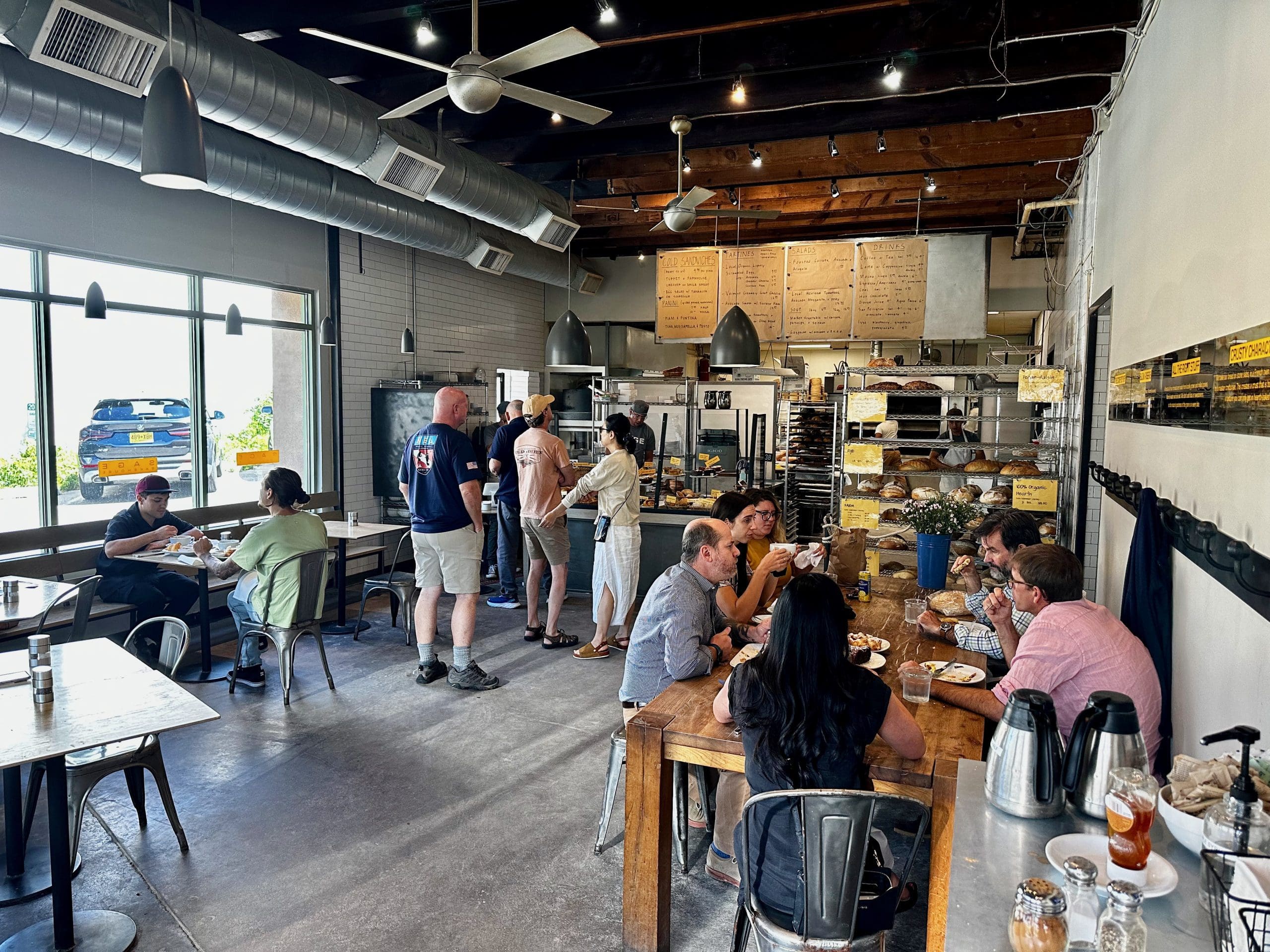 There are four specific types of bread with properties that enhance longevity: sourdough, pita, whole grain and cornbread. Yes, cornbread! During our inaugural visit to Santa Fe’s premier bakery The Sage Bakehouse, we specifically looked for and found two of those four longevity-enhancing breads: sourdough and 9 grain. Had we picked up loaves of these two salubrious breads, we would have been happy–and on the way to more salutary dining. Alas, The Sage Bakehouse proffers so many wondrous calorific pastries that probably offset the healthfulness of its breads. In no way is Sage culpable for us succumbing to temptation. That’s totally on us.