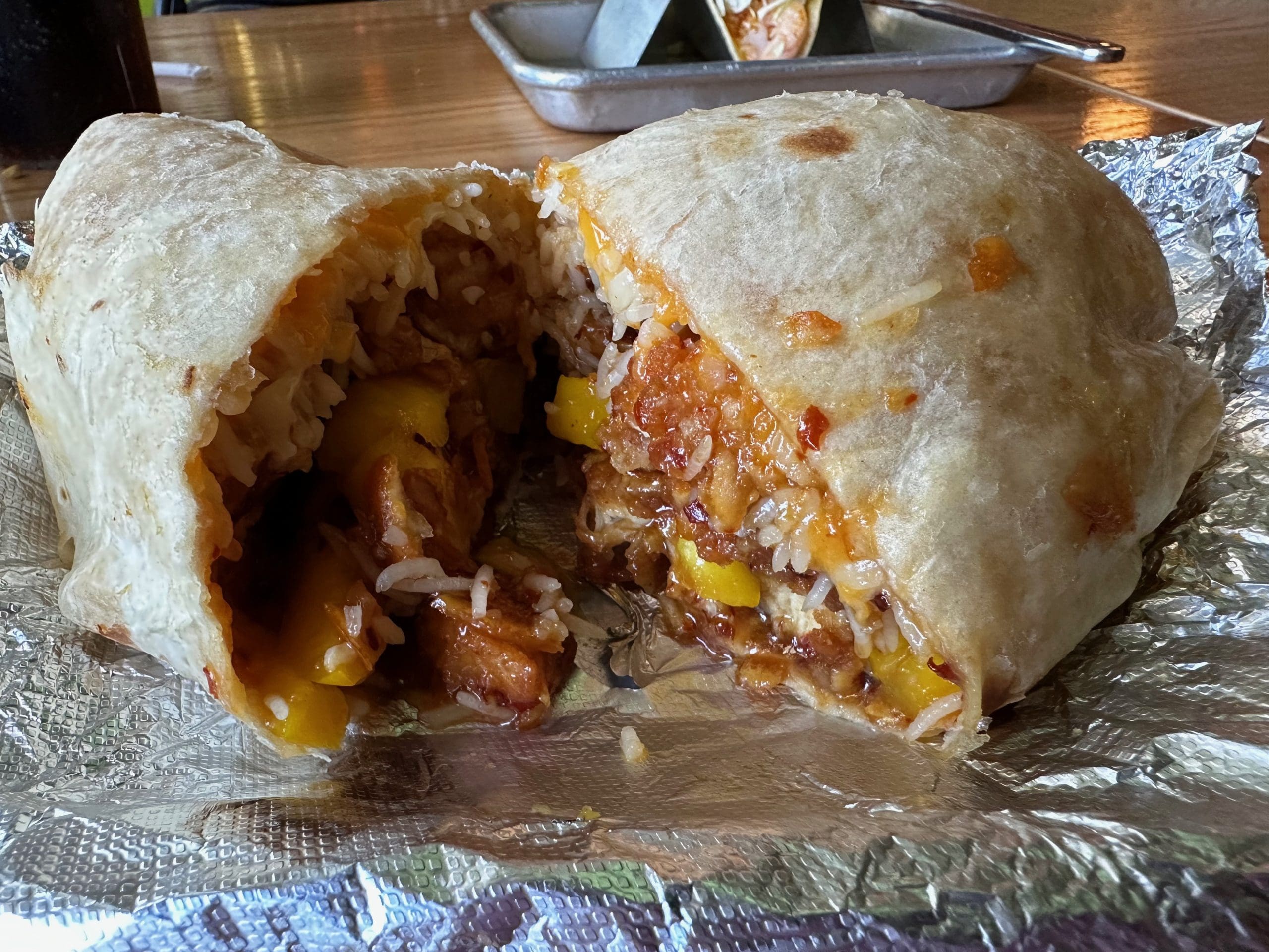 BEST BET: Orange Chicken Burrito, Chicken Wings, Shrimp & Corn Taco
