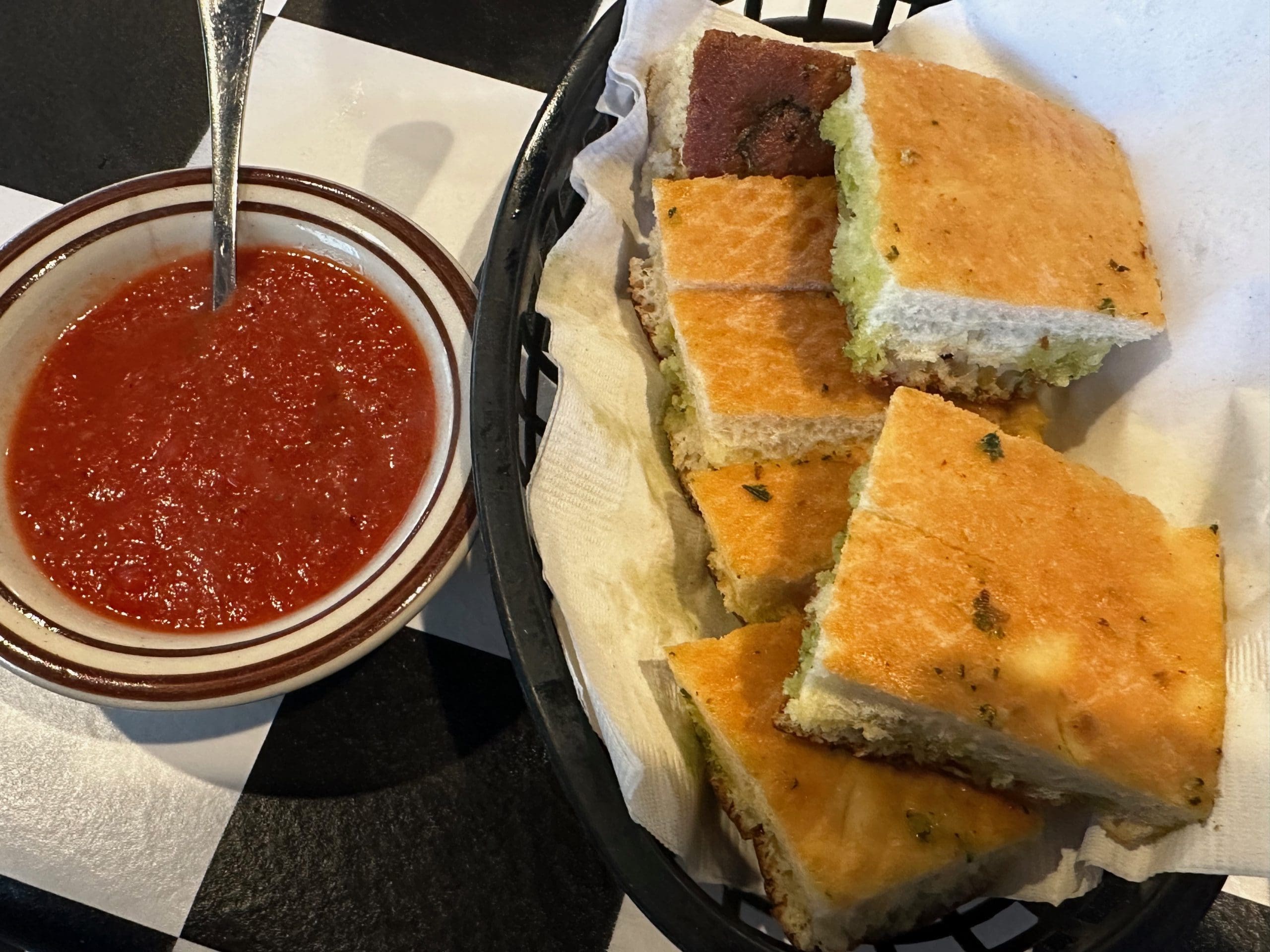 More staggering than the sheer volume of dishes on the menu is the realization that everything is fresh: sauces are prepared every morning, vegetables are freshly cut, ravioli is made in-house as is the focaccia and most of the desserts. Characteristic of all great Italian red sauces, the marinara is even better the following day (should you manage to have leftovers). Perfect for sopping up those superb sauces is the foccacia bread. A basketful of pesto-studded focaccia bread and a plate of marinara sauce are ferried to your table. Only at Joe’s Pasta House in Rio Rancho will you find such a delightful bread and sauce pairing. The foccacia is moist and absolutely delicious. The pesto packs a nice herbaceous touch.