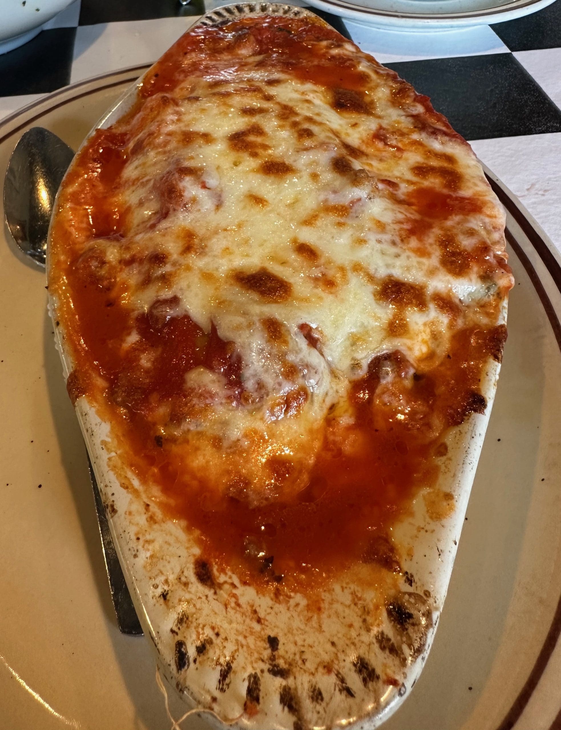 Though I’ve known about Piccolino for years, it took a recommendation from my sister Dolores for us to make the 50-minute jaunt to Santa Fe. A pretty fantasic cook herself, my little sister has a good palate and recognizes great food. While researching Piccolino in advance of our visit, a photo of a seafood cannelloni special caught my eye. Alas, that special wasn’t on the menu during our visit. The restaurant’s signature canneloni (filled with ground beef, spinach, carrots, and ricotta, and topped with marinara and mozzarella) was. Ground beef was the dominant ingredient and flavor. Perhaps spoiled by the decadent cheesy, creamy canneloni at Joe’s Pasta House, I didn’t enjoy it quite as much as other canneloni dishes we’ve had. Mind you, it wasn’t bad. It just wasn’t a calorie laden dish of cheese and cream.