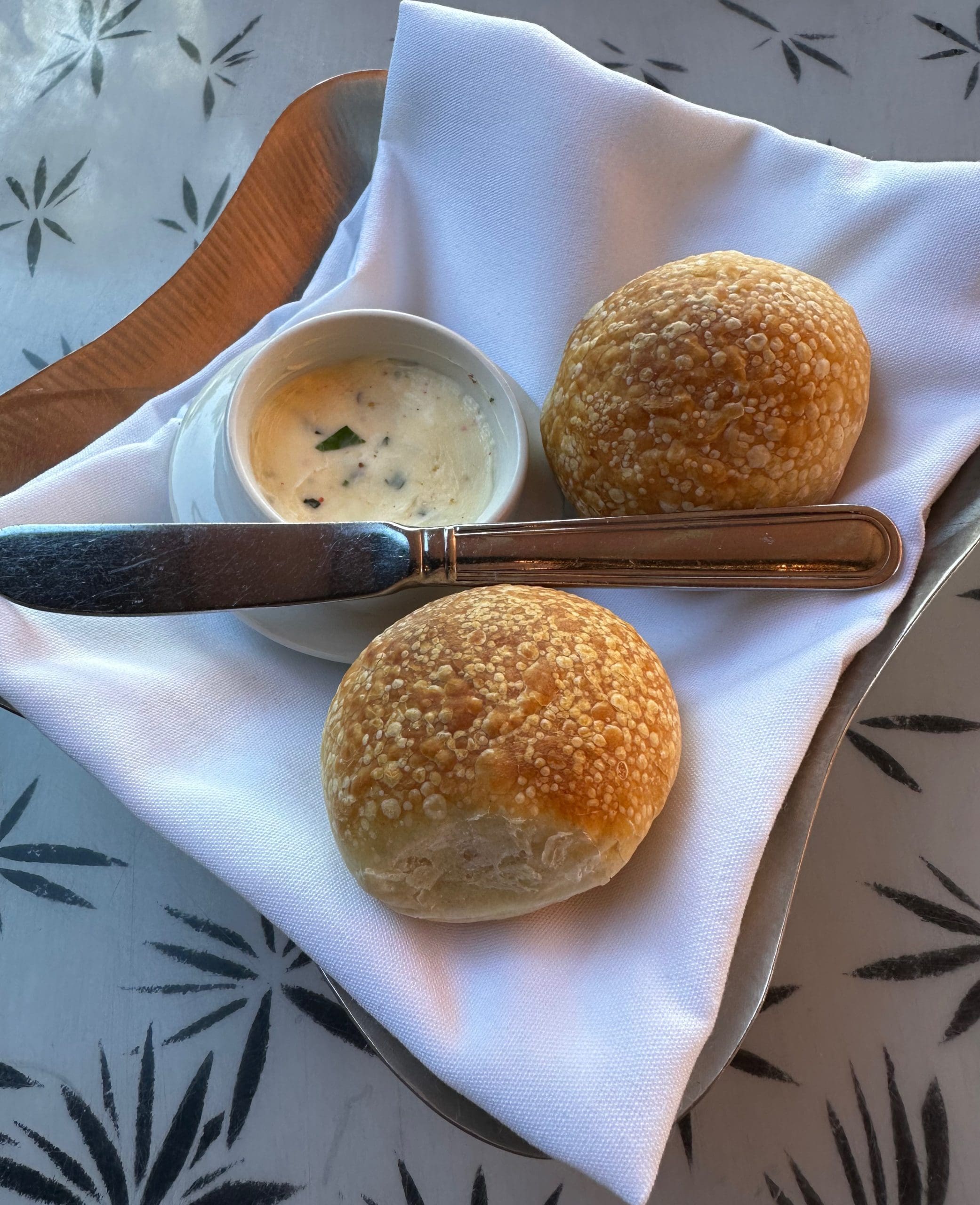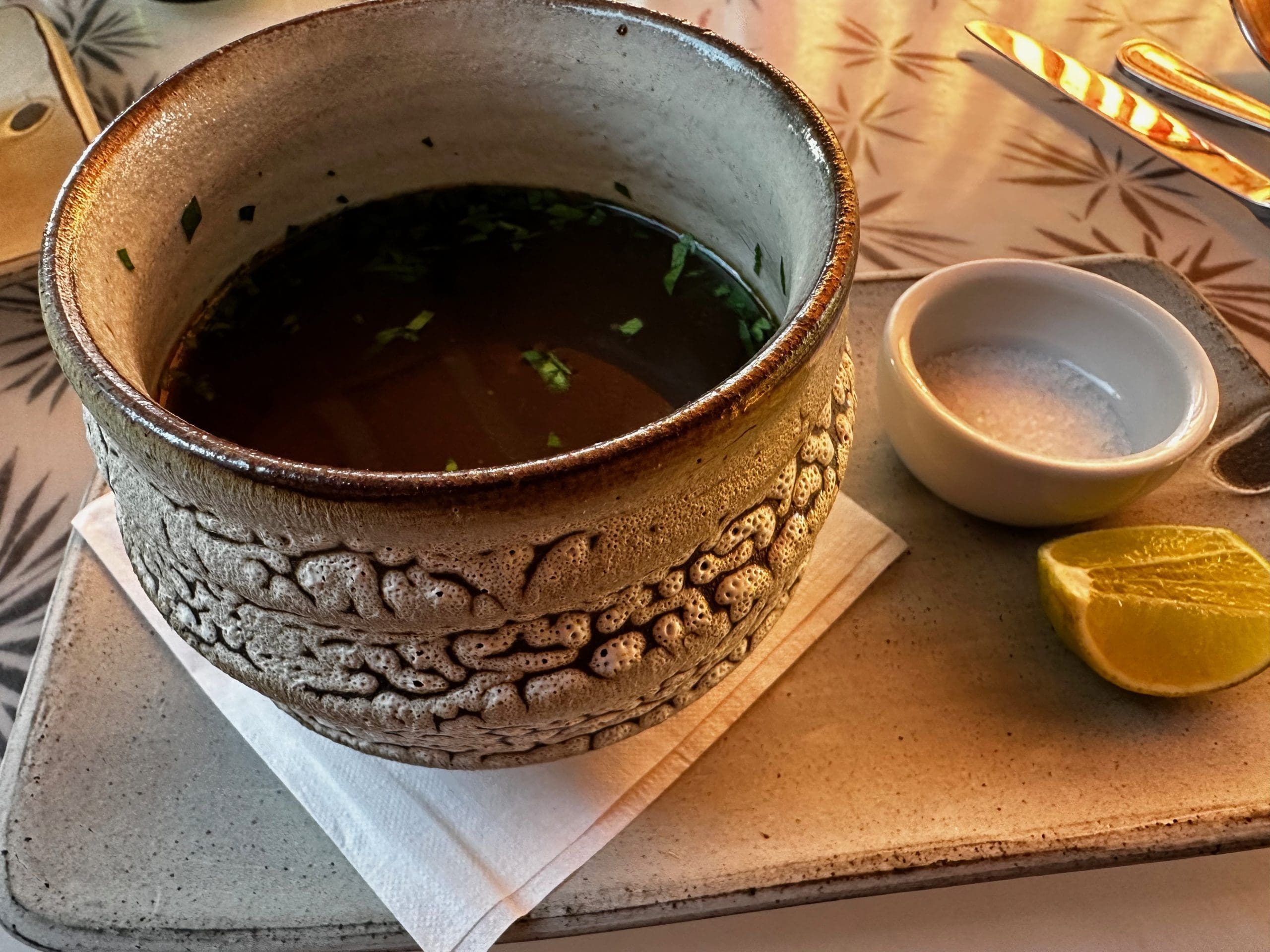 You might not want the supply of bread rolls from the kitchen to end. They’re small and you’ve got to cut them yourself, but there’s a substantial reward when you break into the pillowy insides. That reward can be redeemed two ways. You can spread the soft herbaceous butter on them or you can dip the staff of life into the housemade bone broth. Either way, you’ll appreciate the simply complex wonder that is bread.