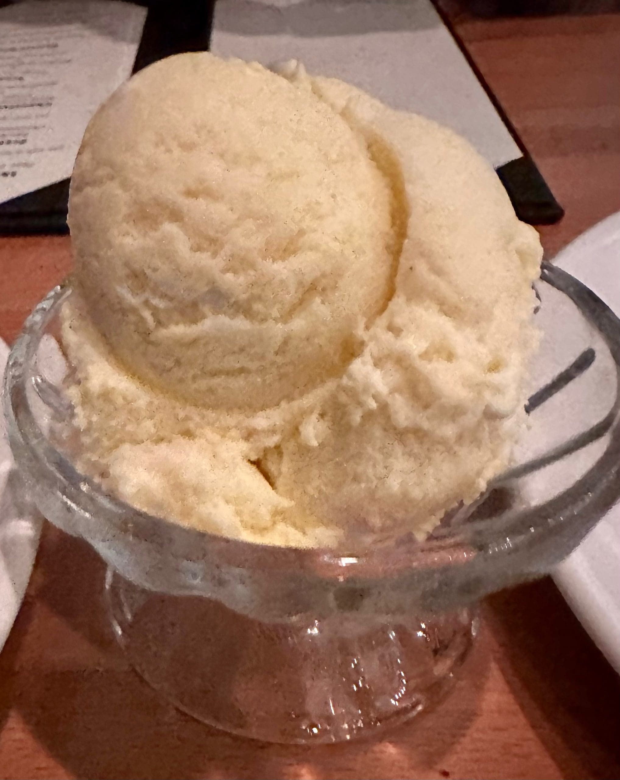 After my first spoonful of the ginger ice cream, I remarked to Linda that it would make a wonderful palate cleanser for sushi. Initially we both thought the ginger flavor was a bit much, but the more we ate the better it tasted. We ordered it as a topping for the pecan pie, but enjoyed it by itself so much that notion went out the window. Ginger has a comforting kick for those of us who love it, but to others it tastes like soap. Count Linda and I as preferring ginger–even over MaryAnn.