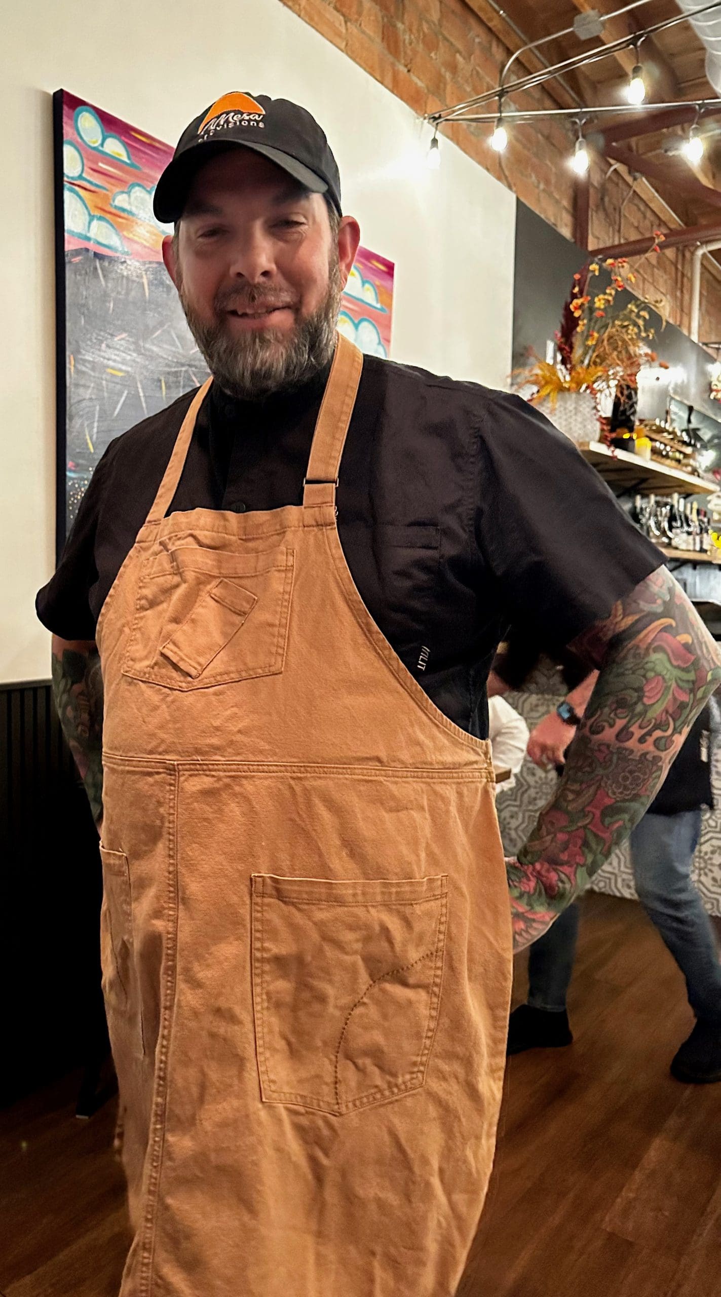 Don’t be surprised when at least one of the dishes you order is delivered by a bearded, heavily tatted guy sporting a baseball cap and an apron befitting either a chef or a blacksmith. That’s Chef Riley, a unique cat who’ll chat you up if time permits. Chef Riley accepts compliments with humility and seems genuinely concerned that all his guests have a good experience at Mesa Provisions. There’s no doubt his guest orientation was a factor in Mesa Provisions being voted by Edible New Mexico readers for a Local Hero: Restaurant in Albuquerque award in 2023. Well, that and culinary fare that’s been blowing diners away.