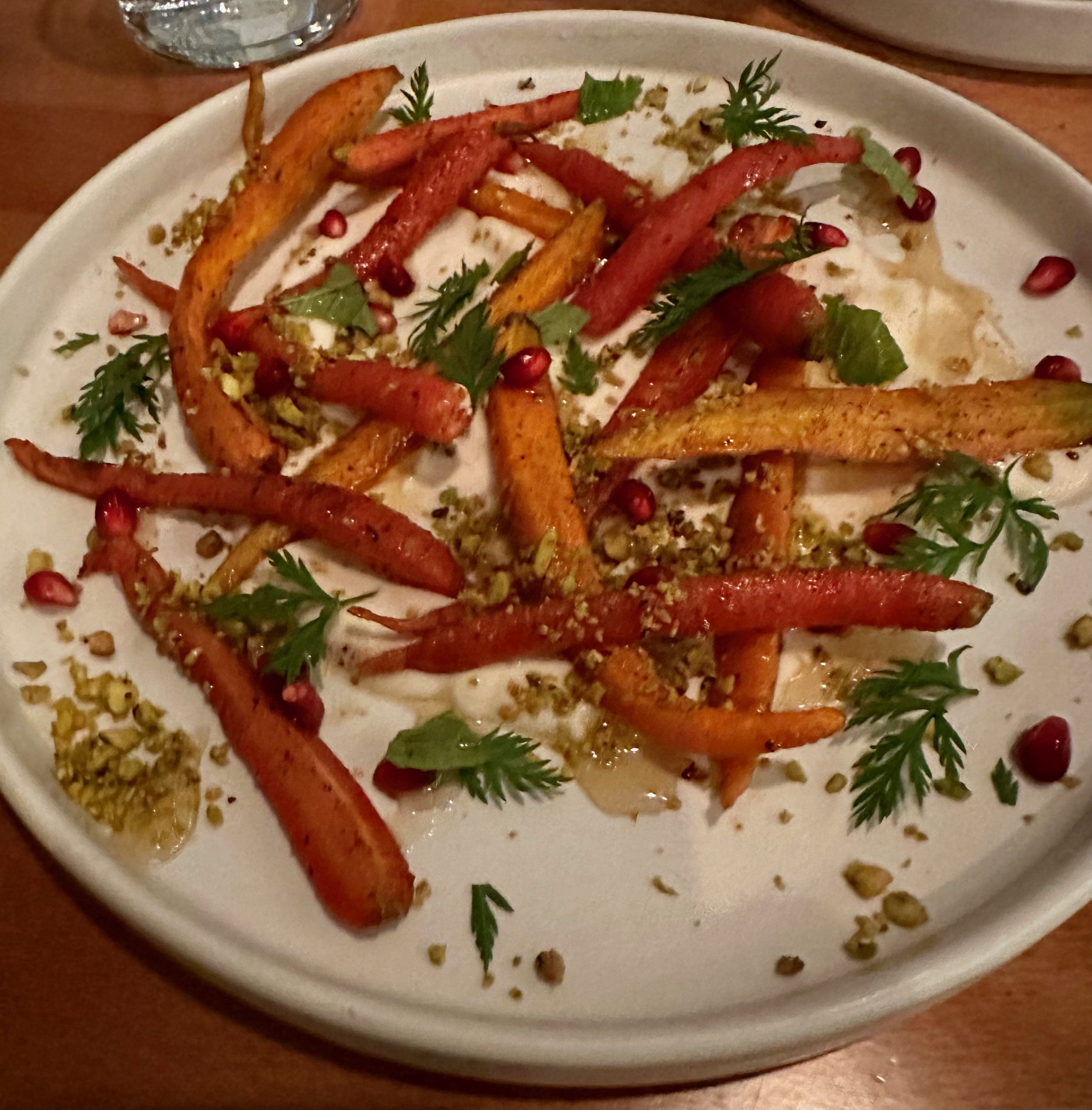 BEST BET: Spiced Carrots, Bacon Wrapped Medjool Dates, Beet & Orange Salad, Ginger Ice Cream, Smoked Half Chicken, Beef Cheeks, Pretzel Pecan Pie, Chocolate Entemet