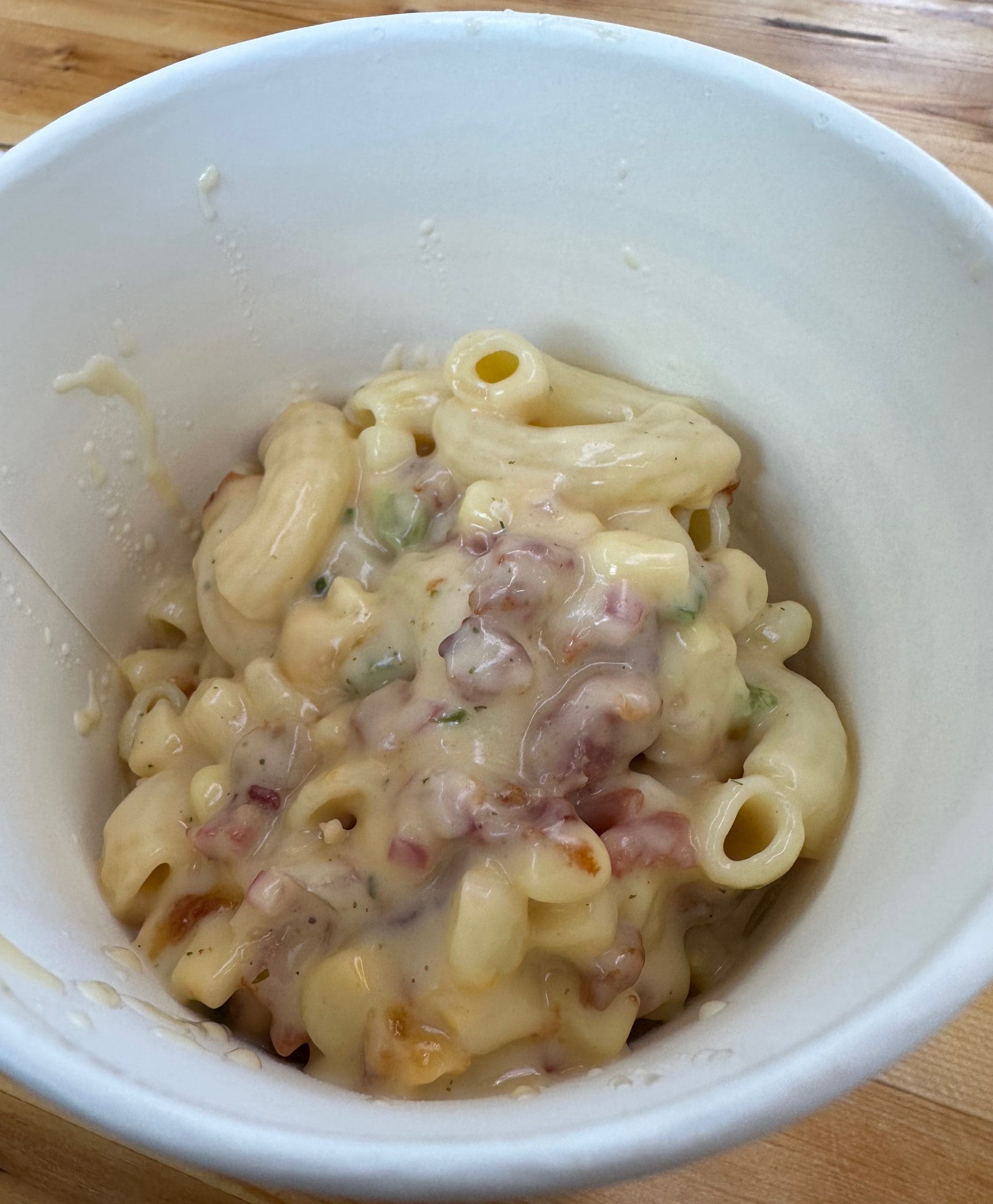 On The Flip offers three “maxed out mac and cheese bowls” including one (Flamin’ Hot Mac) that might set your tongue on fire with green chile and flamin’ hot Cheetos crumbles, the latter of which tends to be much more piquant than most chile. A much milder option is the bacon street mac (five cheese blend topped with fresh lime, cotija cheese and basil pico de gallo. Street corn would be a welcome addition. Green chile, too…and what dish wouldn’t benefit from more bacon. This mac just didn’t have much personality. Certainly it’s much better than Kraft’s mac n’ cheese, but as an adult mac, it’s got a ways to go.