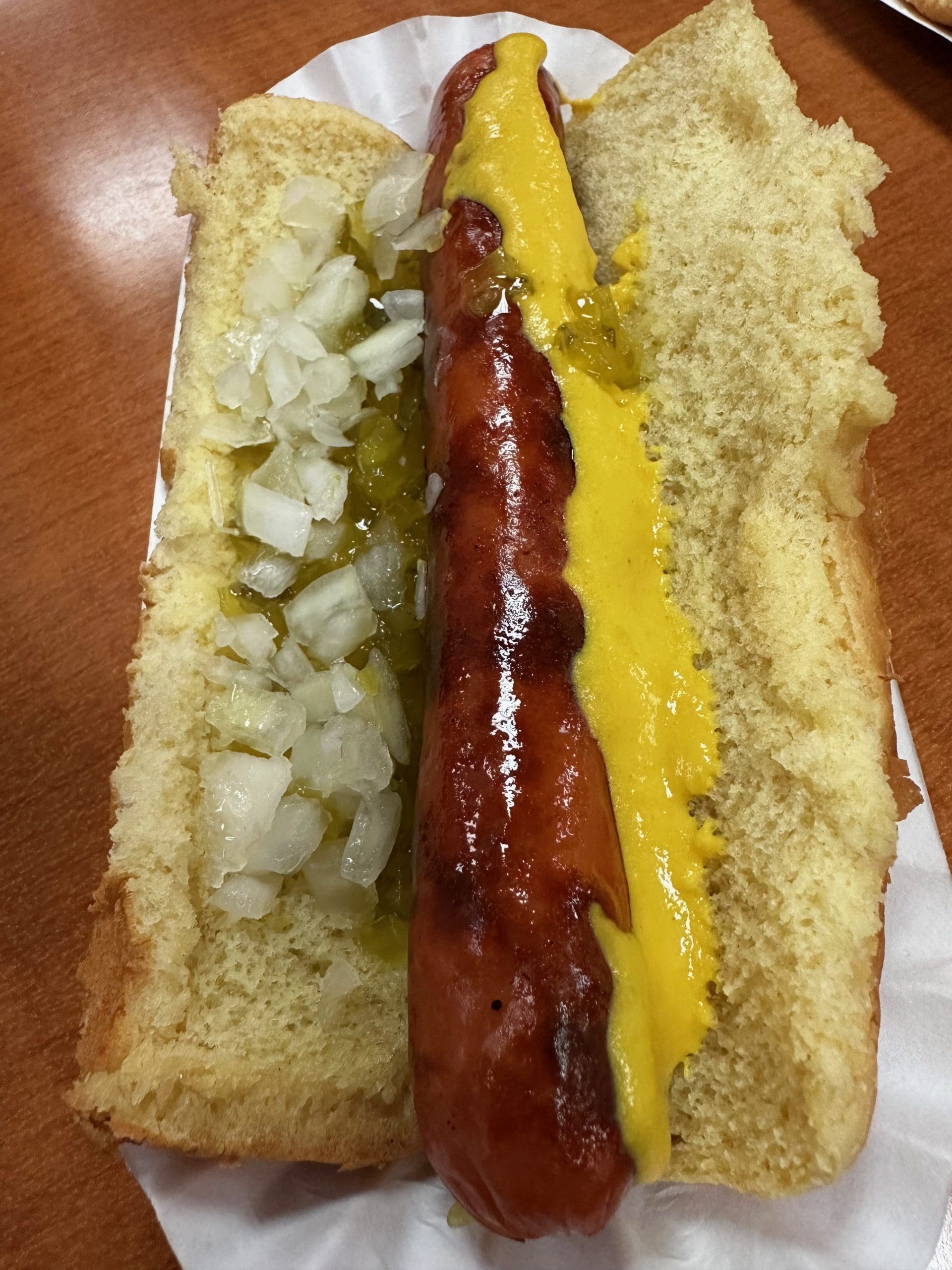 8 January 2026: On our second visit to Ted’s, my Kim rectified the one mistake she made during our initial visit. This time she ordered a foot-long hot dog with her usual condiments: mustard, relish and onions. Sadly, Ted’s doesn’t seem to offer a foot-long Polish sausage option. This time, instead of Ted’s hot sauce, I enjoyed my Polish sausage with sauerkraut and mustard. Talk about flavor profiles that talk well with one another. The smokiness of the Polish sausage and the tanginess of the sauerkraut made for a superbly delicious meal.