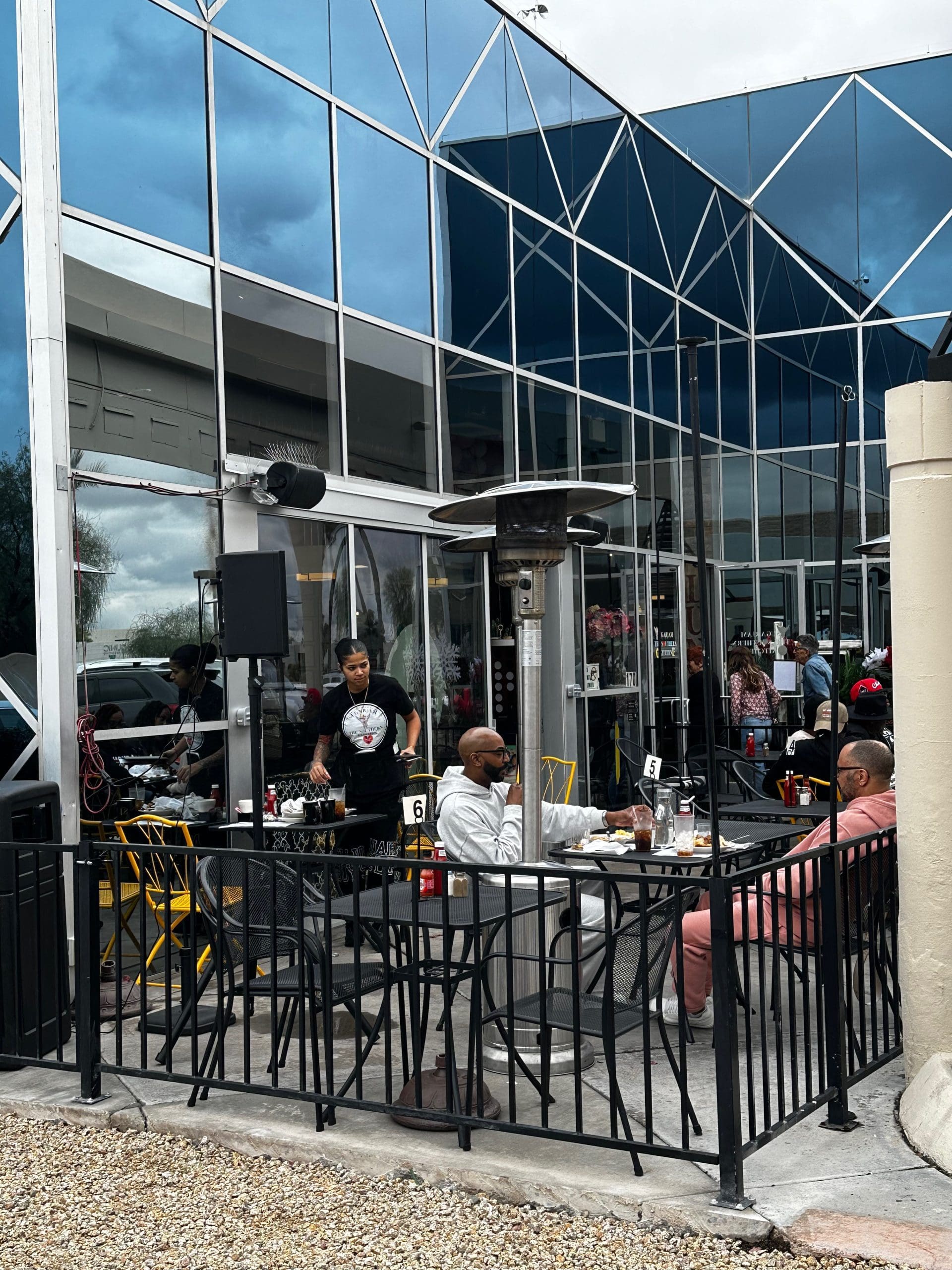 Perhaps wrongfully so, most of us have a stereotype as to what a Southern or Soul restaurant should look and feel like. Sugar Jam blew those stereotypes out of the window. Little did we know Saturday and Sunday brunch featured a live DJ. The volume was turned up to an ear-splitting level reminiscent of when my friend Patrick Fields and I listened to Double Dutch Bus on the mean streets of Albuquerque. There were no seats available within the restaurant, but we were graciously offered seating on the patio. Mind you, it was 48-degrees, parka weather in The Valley of the Sun.