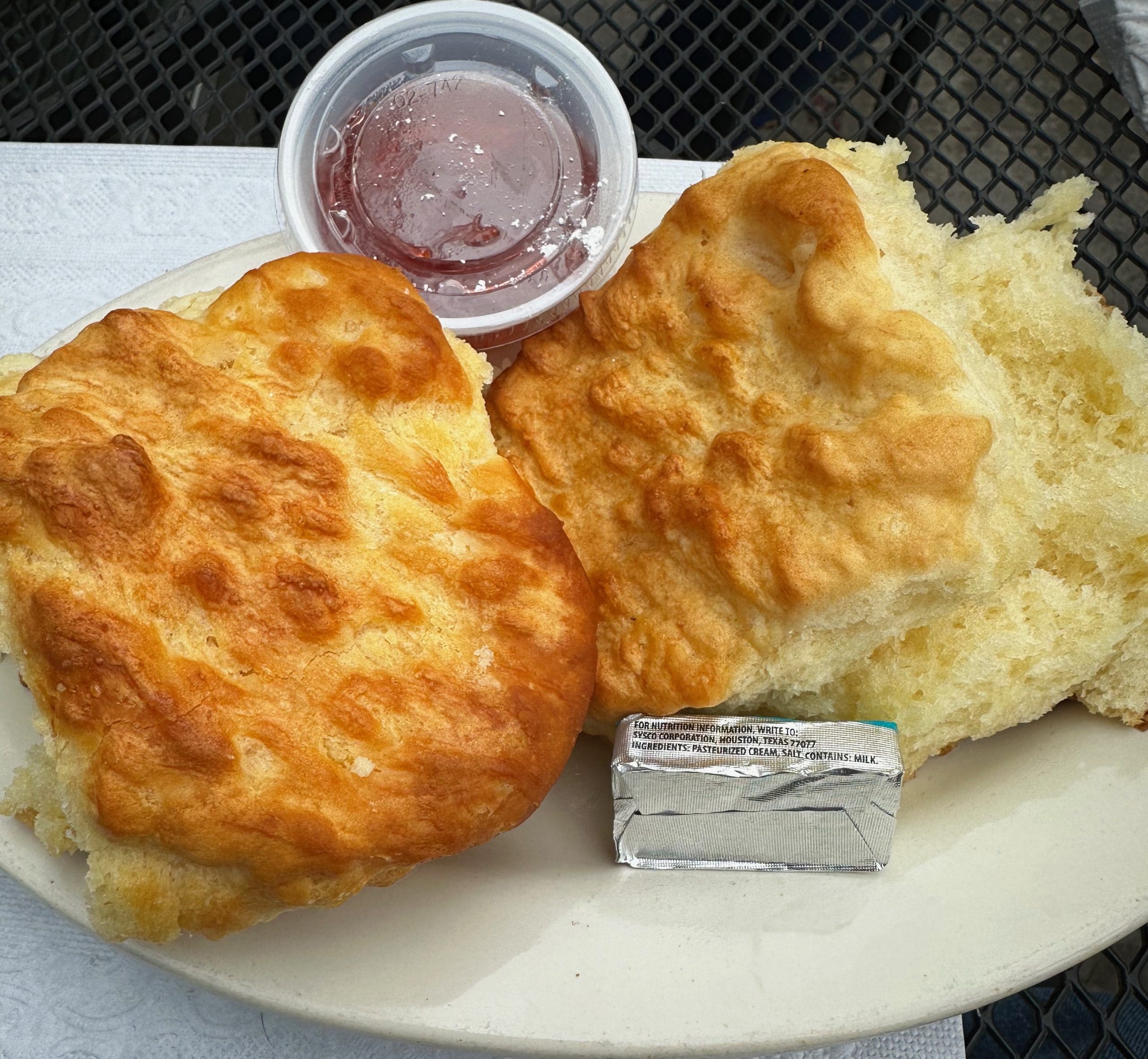 When discussing Southern food, Paula Deen emphasizes “It’s not all about the fried chicken and the biscuits.” Maybe not, but we can’t visit a Southern restaurant without having biscuits with jam. Sugar Jam’s biscuits are light, fluffy and delicious–the perfect receptacles for melted butter and strawberry jam. Each biscuit is about the size of a discus. Their golden hue is most appropriate considering they’re worth their weight in their color.