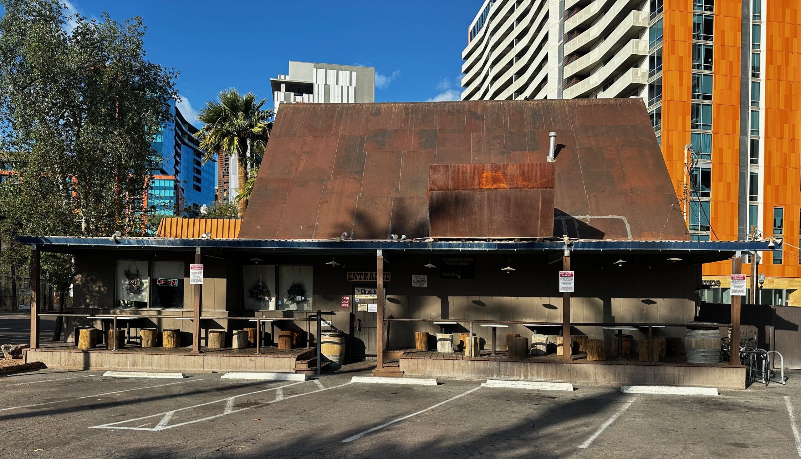 The great big one, as you may have surmised, is the biggest burger available at The Chuckbox, an ASU area institution and one of the oldest businesses in Downtown Tempe. Now in operation for nearly half a century, it’s been continuously owned by Frank, formerly an executive for a now defunct burger chain. When the chain wanted him to move, Frank decide to remain in Phoenix to focus on his family, and create a new, and completely different, family hamburger restaurant. His creation, The Chuckbox, helped pioneer the concept of having customers watch as their food cooks over a mesquite grill. Chuckbox was also probably one of the very first restaurants in the Valley to introduce the idea of an open condiment table, where you can put anything you want on your burger, as long as you “play it fair.”