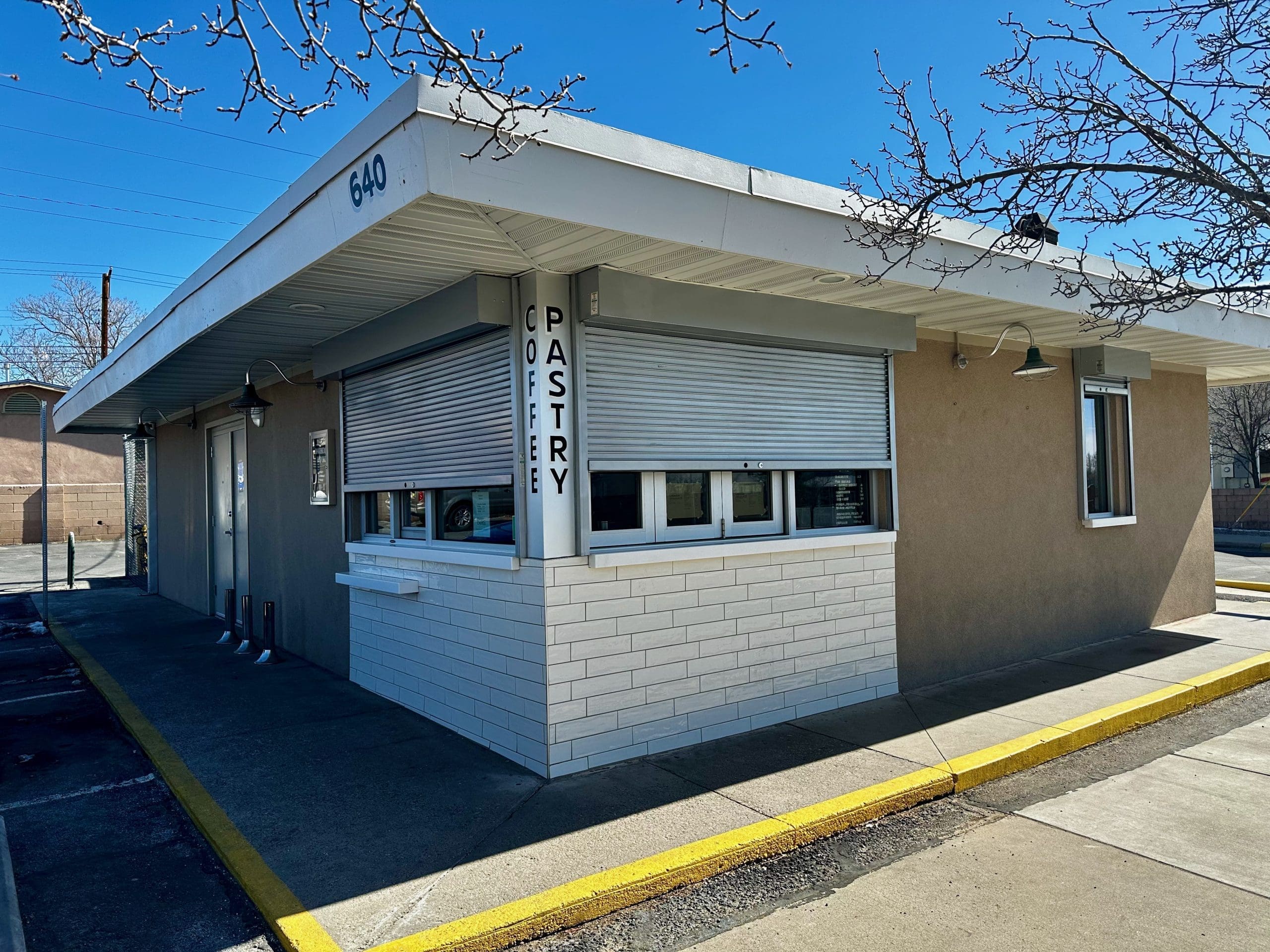 Long-time Duke City residents might remember a small, long-time vacant Dairy Queen restaurant on the southeast corner of Broadway and Hazeldine. That’s now the home of Burque Bakehouse. Few (if any) vestiges of Dairy Queen remain. As explained on the website for Mullen Heller, the architect responsible for that Dairy Queen’s startling transformation: “As a French-Influenced, Burque-made, small-batch bakery, the aesthetics of the renovated building needed to reflect the caliber of goods being served. Respecting the simple, midcentury lines of the existing building, a large corner storefront service window anchors the front facade along with new, hand-made subway tile, aluminum soffits emphasizing the characteristically deep overhangs, and new gooseneck light fixtures define the outdoor seating areas.”