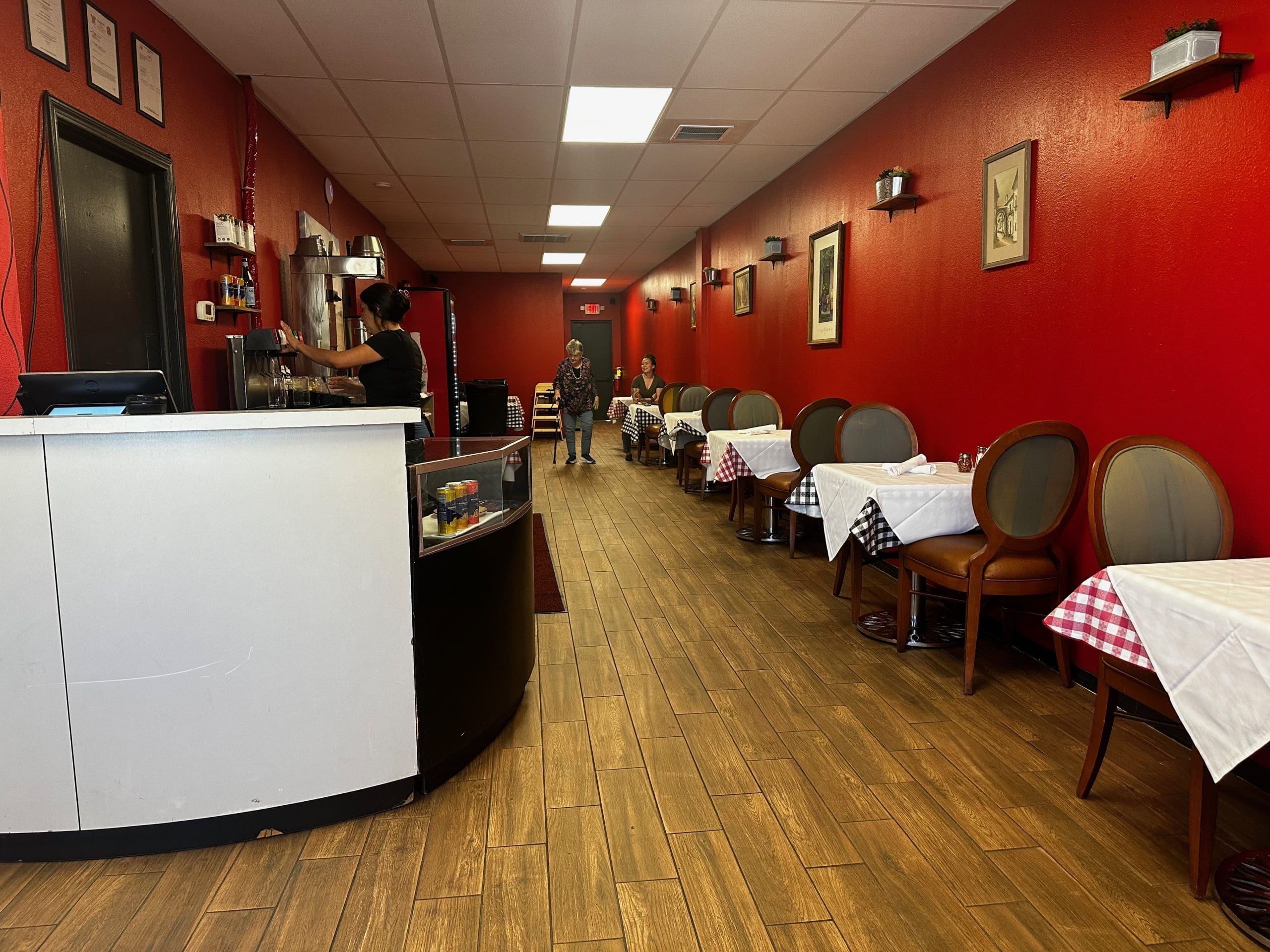 While the concept of a ghost kitchen showed promise, the reliance on delivery services meant food may not be warm or fresh by the time it got to its intended destination. Urbano shuttered its doors not long after Anthony Fauci decided it was safe for Americans to interact with one another again. It made sense for the three chefs to launch a brick-and-mortar restaurant. Il Localetto Rossi opened its doors in March, 2024. No vestiges of the Thai House remain. The one room dining room is painted red with seating along the walls.