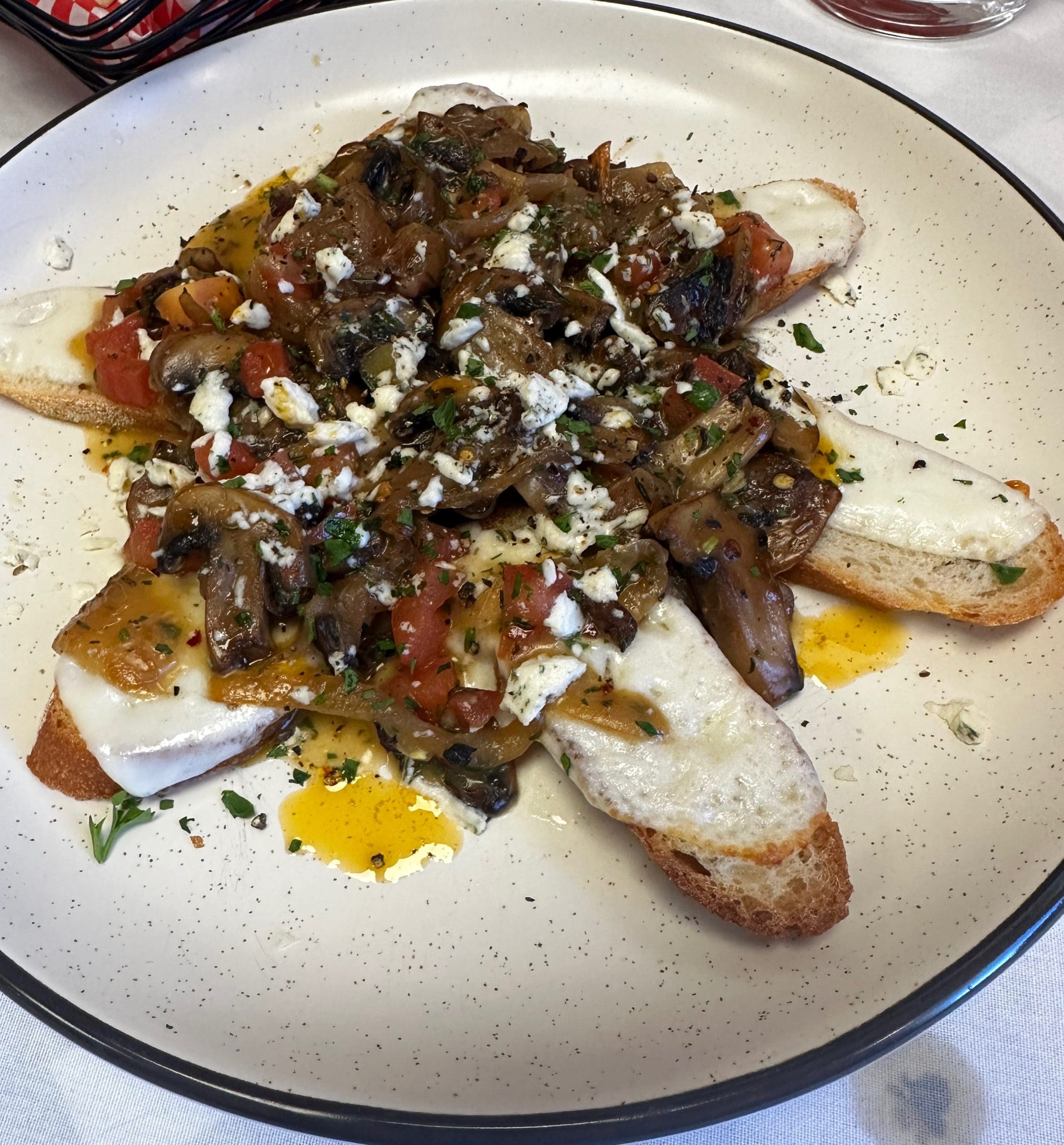 First I must confess that I was seriously underwhelmed the first time I visited. Some friends who had never been there wanted to go, however and it had been a while, and unless you get food poisoning it’s not fair to only give a restaurant one chance, IMHO. The difference from my first visit was remarkable. Day and night, black and white, 180°!! The food was truly exceptional. One of the entrees I was considering had an ingredient that I’m not fond of so it was very good to hear that they don’t make anything until you order it so customization is no problem for them at all. Definitely a plus. We started with the Mushroom Bruschetta appetizer. Truly heavenly. Six pieces were perfect for three people. If there had been four of us I might have had to arm wrestle for a second piece. The entrees included Eggplant Parmesan, Chicken Parmesan and Gnocchi Cacio E Pepe. I regretted that I myself did not get the Eggplant Parmesan. It was what I got the first time around and it was very disappointing. The dish this time around looked absolutely perfect. The group I was dining with typically doesn’t get desserts but a Tiramisu and Mango Sorbet somehow made it to the table. No regrets. Huge portions of everything so you are not going to go away hungry, or you’re going to take home enough leftovers for a second meal. Which means dessert sharing is possible. To top it off, our waitress was probably the most accommodating and genial wait person I have had in years. I just can’t say enough good things about this place now and I’m so glad my friends convinced me to give it another chance. Sorry I didn’t snap pictures for you, Gil. By the time I had overcome my skepticism that I wasn’t in for another ho-hum meal I was devouring everything with a big smile on my face. But, you and Kim haven’t been here since last year so maybe it’s time you give them another visit? Let me know, I want to give that Eggplant Parmesan a second chance!