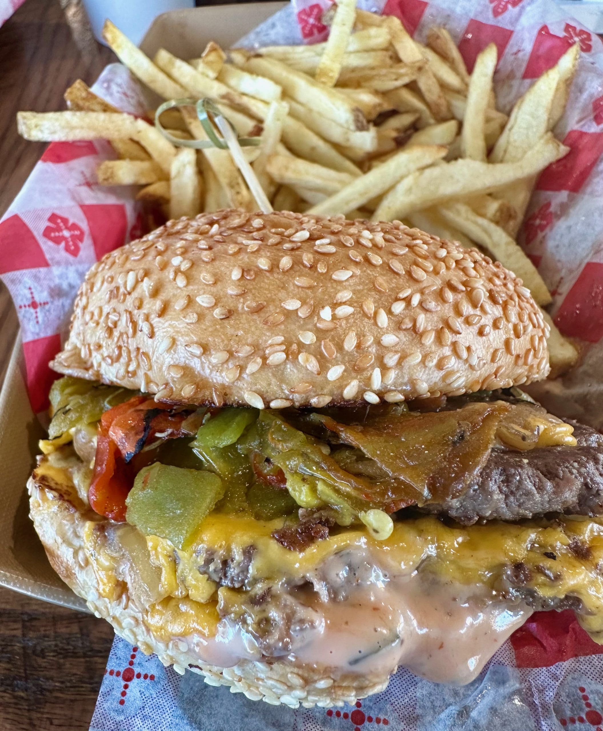 1 May 2024: I don’t always follow my advice and (a little self-deprecation here) am not always the most savvy of diners. Then again, how do you know if there may be better options than the fabled Laguna burger if you don’t try other options? During our inaugural visit to Rio Rancho’s Laguna Burger, my choice was the Buffalo Smash (two buffalo smash patties, grilled onion, Cheddar cheese and “big bad” sauce) with green chile. Contrary to some belief, buffalo does not have a strong, gamey flavor. In fact, it tastes similar to beef but is lighter with a subtle earthiness. It’s somewhat lower in fact than beef is (not necessarily a positive; fat is flavor). Frankly, the lack of flavorful fat was noticeable. The “big bad” sauce is Thousand Island dressing without any of the qualities deserving of its name. Now, this is a good burger, but the Laguna Burger is a great burger.