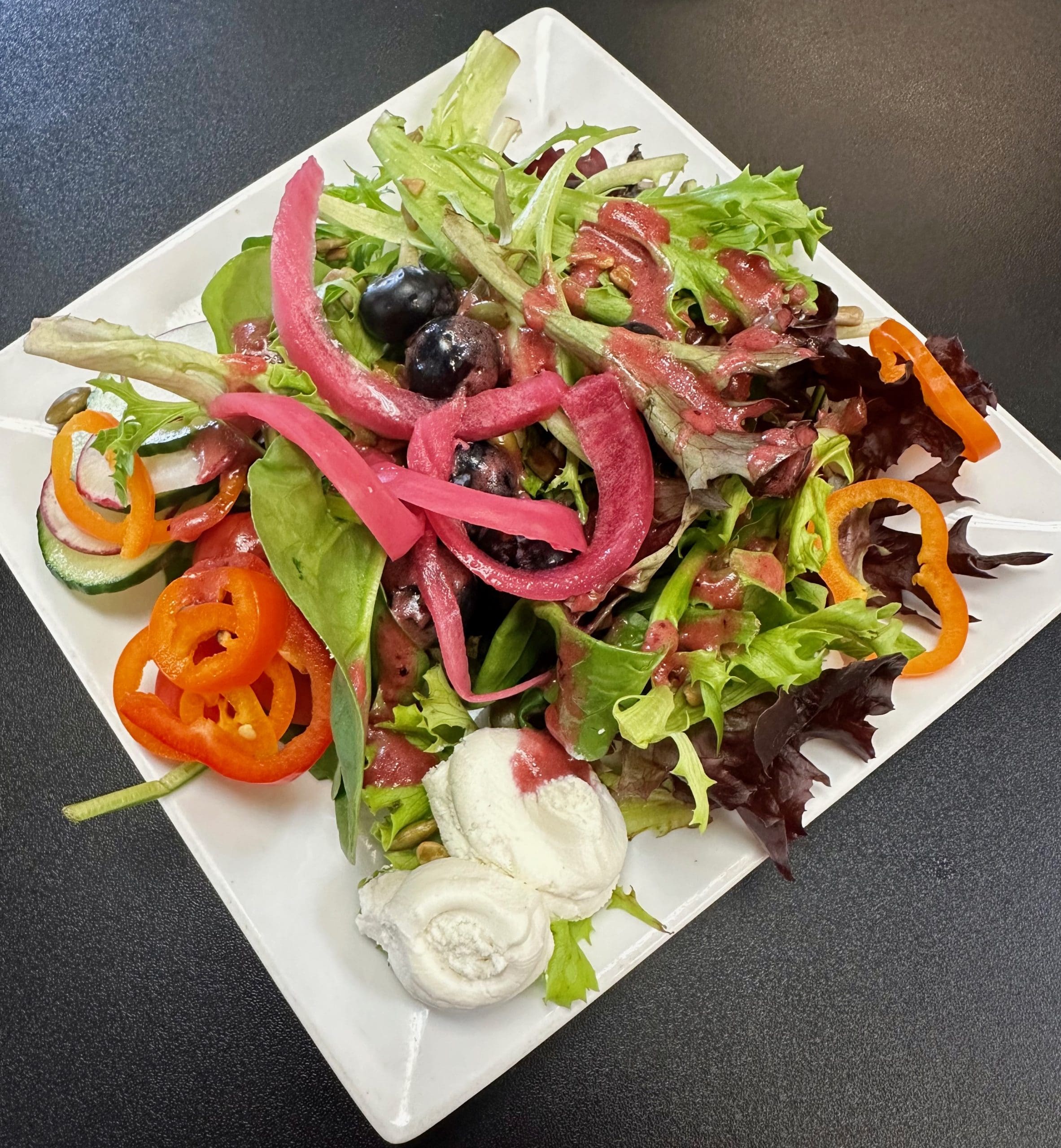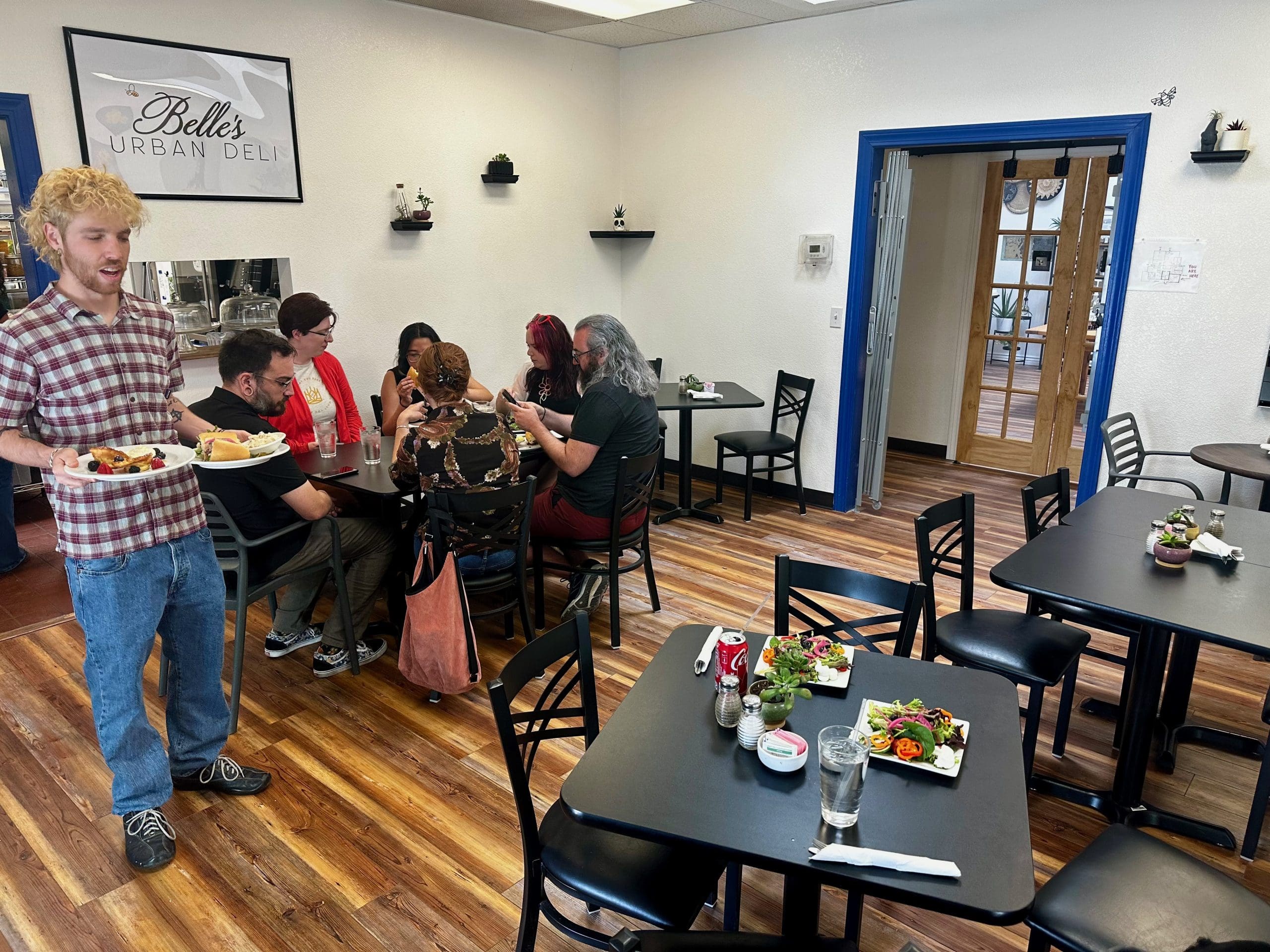 Because Corrales prohibits garish eyesores on the side of its streets, you won’t see loud signage beckoning you toward Belle’s Urban Diner. Fortunately most of the village’s drivers tend to drive ten to fifteen miles below the posted speed limit so you should be able to find it. The deli is located in a converted home where it shares space with several niche businesses and professional offices. Through the front entrance you’ll walk past those. Belle has its own entrance directly into its cozy dining room and spacious patio.