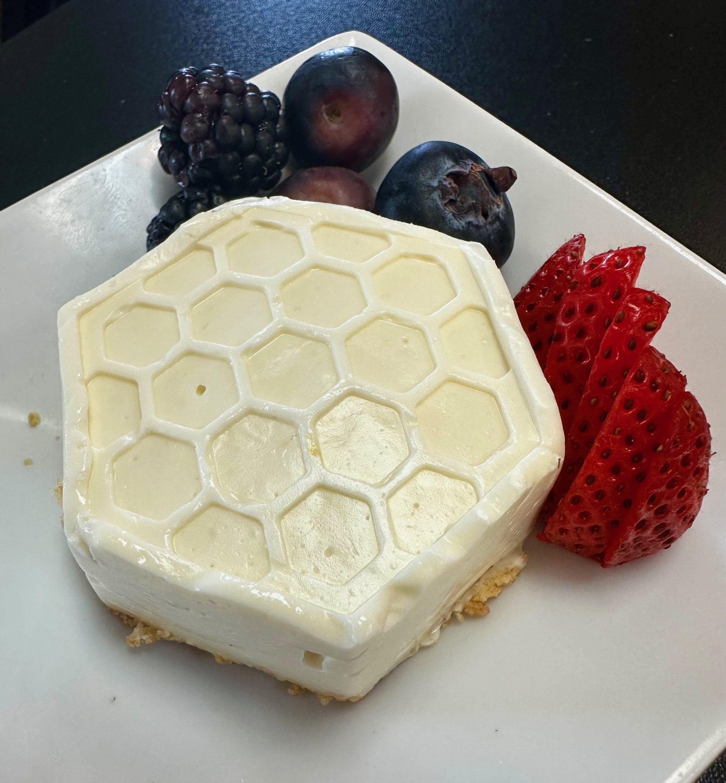 Honey is a popular ingredient on Belle’s menu…and why not. Honey is so much more than a sweet and viscous substance produced by bees. It’s sweet with a floral, fruity, maybe even earthy undertone. It’s replete with nutritional benefits such as antioxidants and enzymes. Moreover, it’s utterly delicious and versatile. President George Washington topped his hoecakes with honey. Belle’s uses it on its desserts–such as the honey and berry cheesecake. Its hexagon shape is unlike any other cheesecake of memory. More unique is its brilliant melding of flavors (especially the slightly sour cheesecake with the floral honey). It’s a validation of Caitlin’s talents.