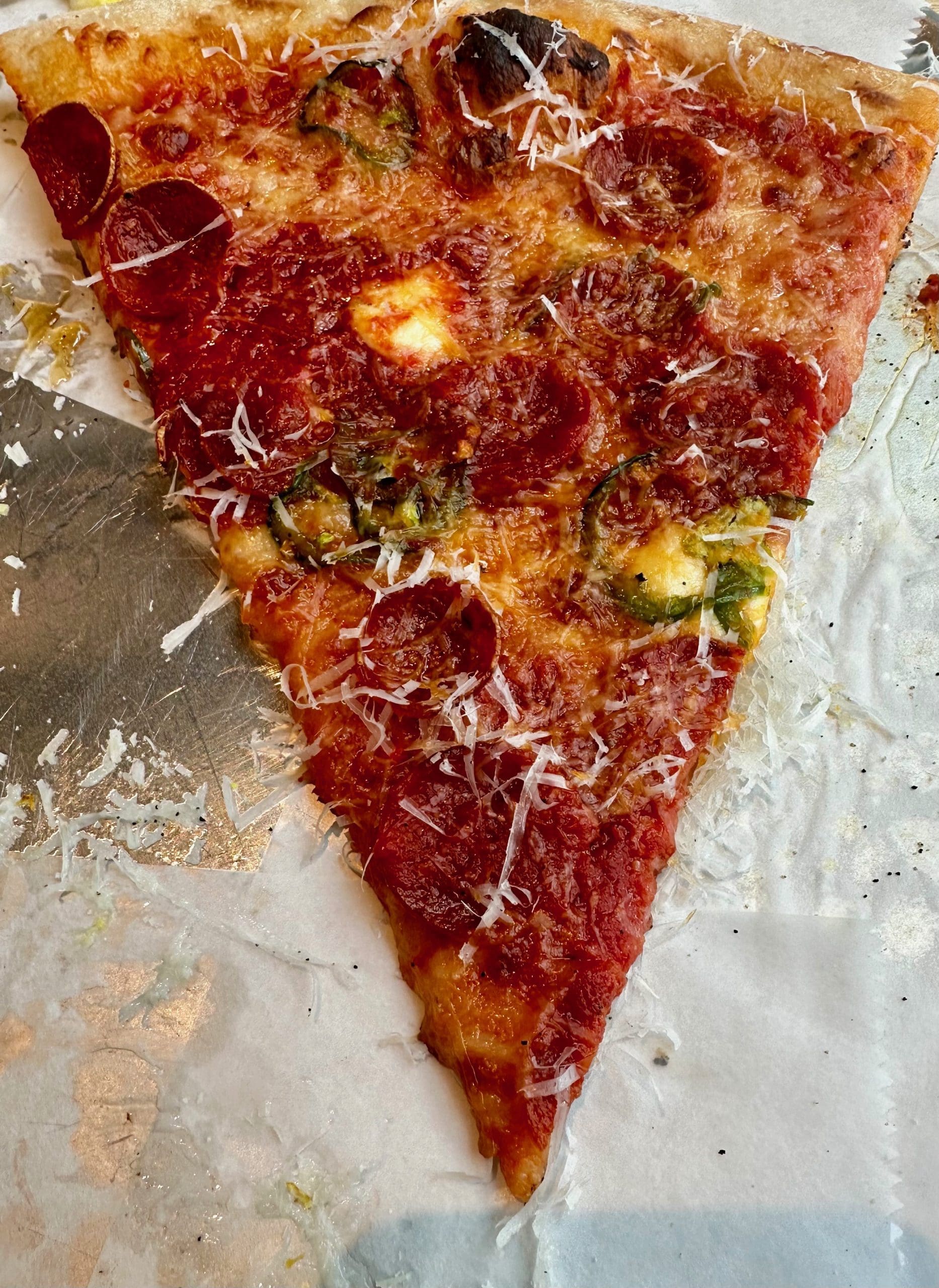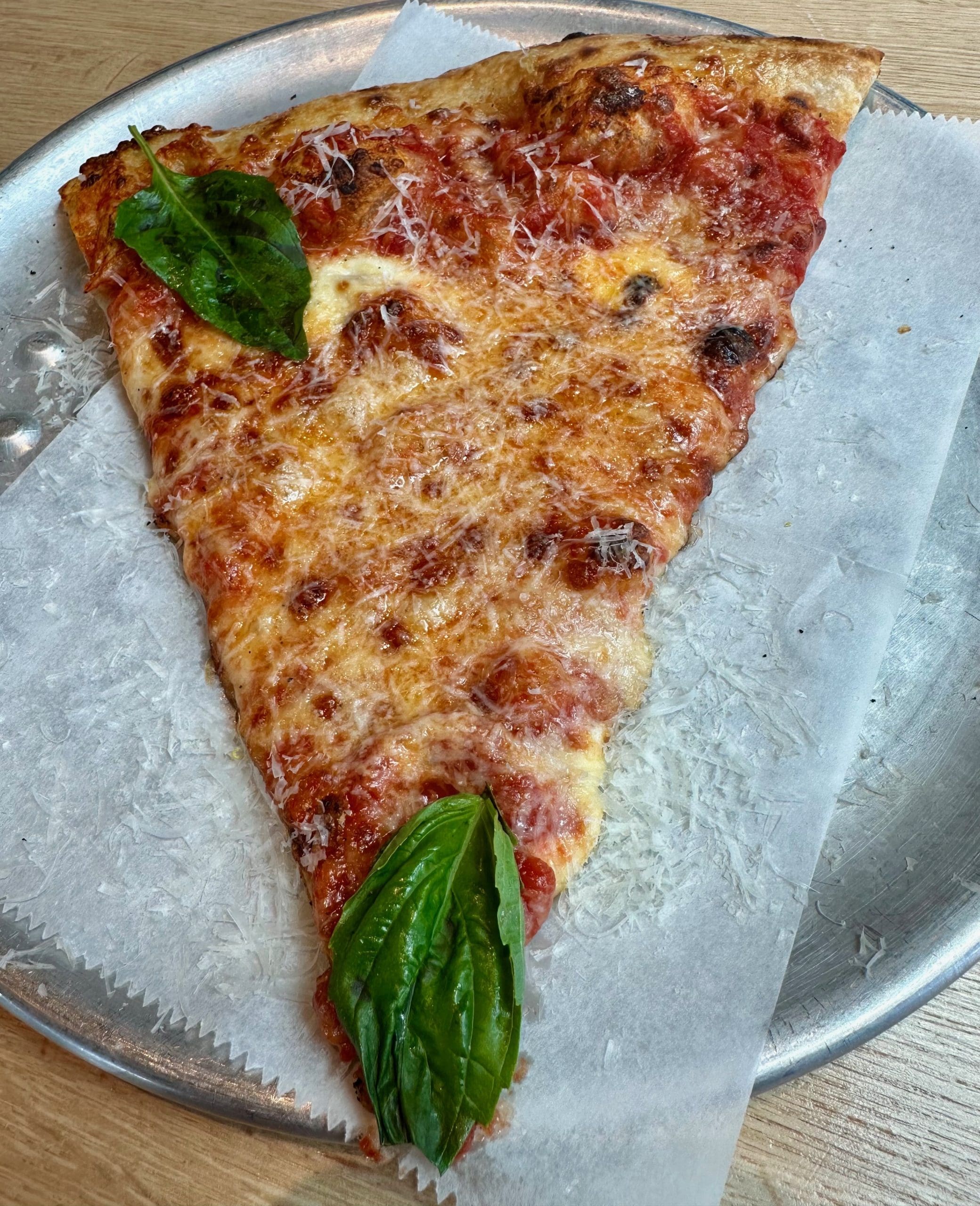 In New York City, pizza by the slice is as ubiquitous as towering skyscrapers. Many of the city’s nearly 2,000 pizzerias serve pizza by the slice. Most have been doing so since the end of World War II when recently returned American veterans who had served in Italy craved the sliced pizza they had enjoyed during their service. Heck, in the Big Apple, you can even find pizza by the slice proffered by sidewalk vendors. According to my friend, the late, great Italian chef Mario D’Elia of Poppy’s Pizza & Italian Eatery, pizza is a street food. “That’s so you can eat it while you walk,” he explained. At about three bucks a slice, it’s usually pretty decent thin-sliced pizza blanketed with cheese.