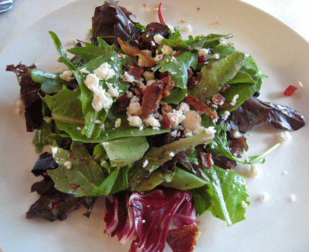 From among the ten appetizer menu, you’ll probably want to try at least two starters. The pomegranate glazed quail with sweet potato fries is an excellent option. Despite its diminutive size, quail is a meaty fowl with little fat or sinew. It’s also a fairly juicy bird which absorbs complementary flavors well. The quail is lightly encrusted in a thin sheath that allows the sweet-tart flavor of the pomegranate glaze to penetrate deeply. The sweet potato fries, just a handful, are thick and soft with a sweet, delicious flavor.