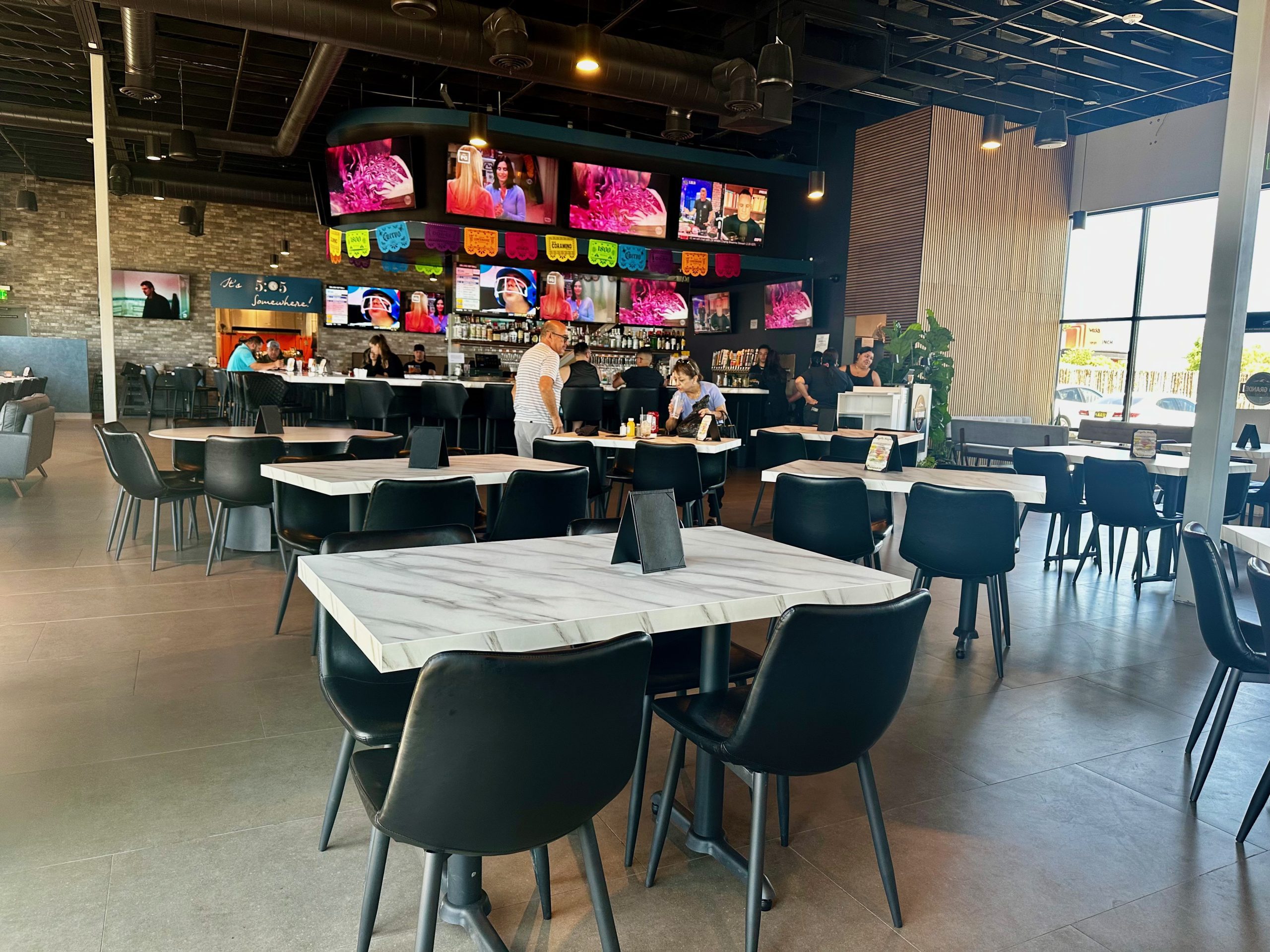 Rio Grande Social is going to attract a lot of patrons, especially during football season. A bank of flatscreen televisions is the cynosure of the otherwise antiseptic (scrupulously clean or pure, especially so as to be bland or characterless.) restaurant. High ceilings and industrial duct work keep the restaurant cool, but they don’t muffle sound well. Seating is a plus. It’s not in personal space proximity (though The Dude always attracts a crowd wherever we go).